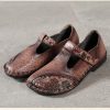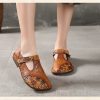 Spring Flats Women Shoes Retro Genuine Leather Hook & Loop Round Toe Casual Shallow Flower Ladies Shoes