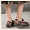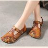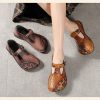 Spring Flats Women Shoes Retro Genuine Leather Hook & Loop Round Toe Casual Shallow Flower Ladies Shoes - Image 5