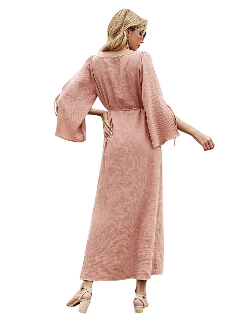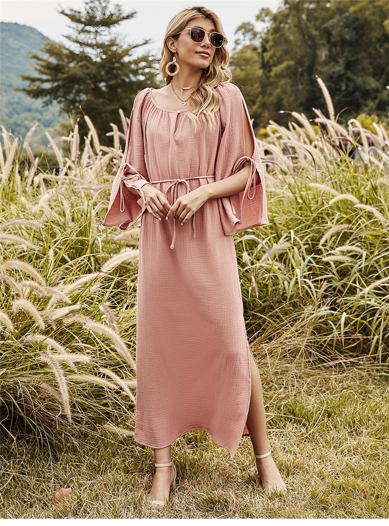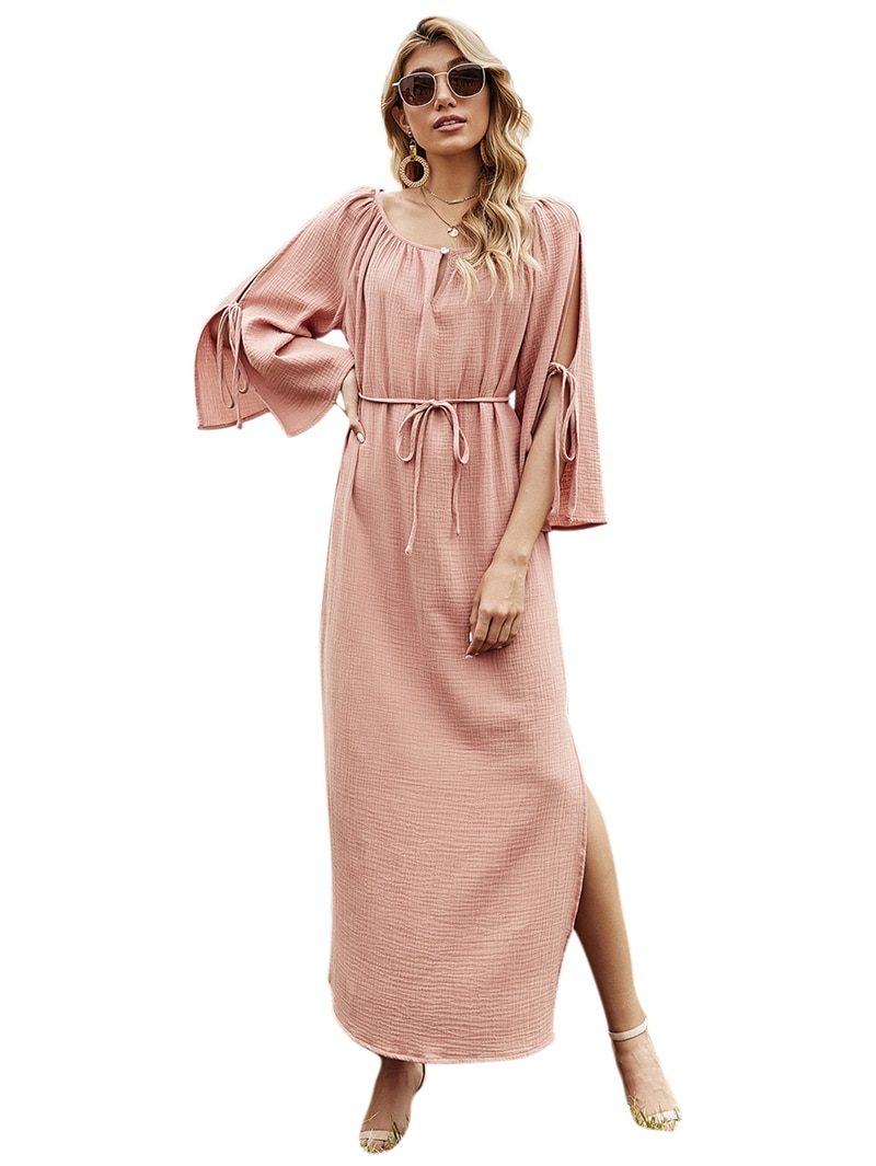 Spring High Waist Bandage Dress Women Long Solid Color Split Full Sleeve Elegant Dresses Ladies Casual Summer Dress