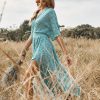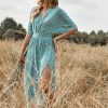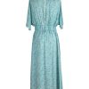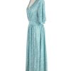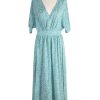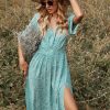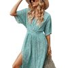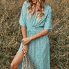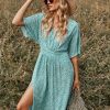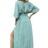 Spring Ladies Green Floral V-Neck Chic Dress Women Mid-Sleeve Long Open Back Irregular Long Dress
