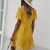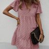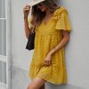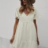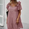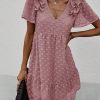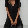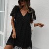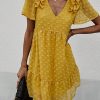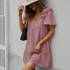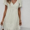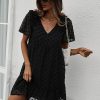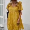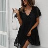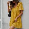 Spring Party Short Dress Women Sexy V Neck Butterfly Sleeve Hairball Holiday Style Ladies Solid Summer Mini Dresses New