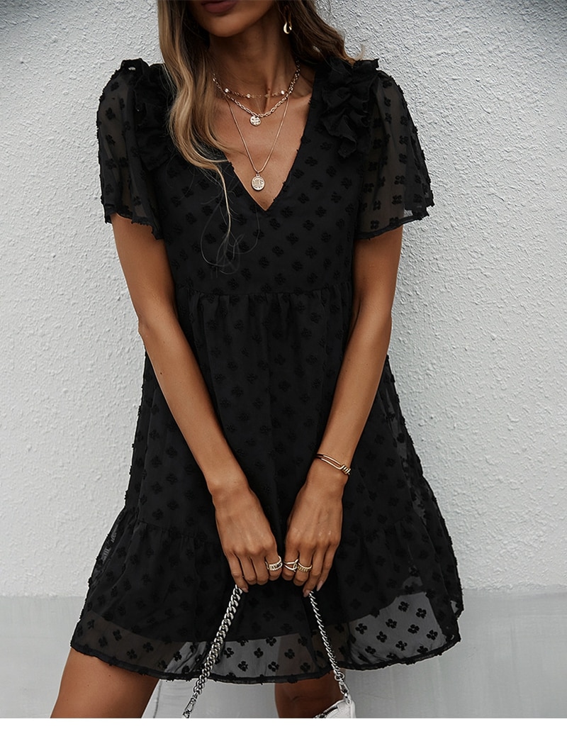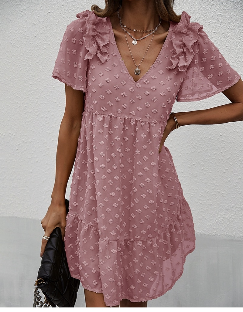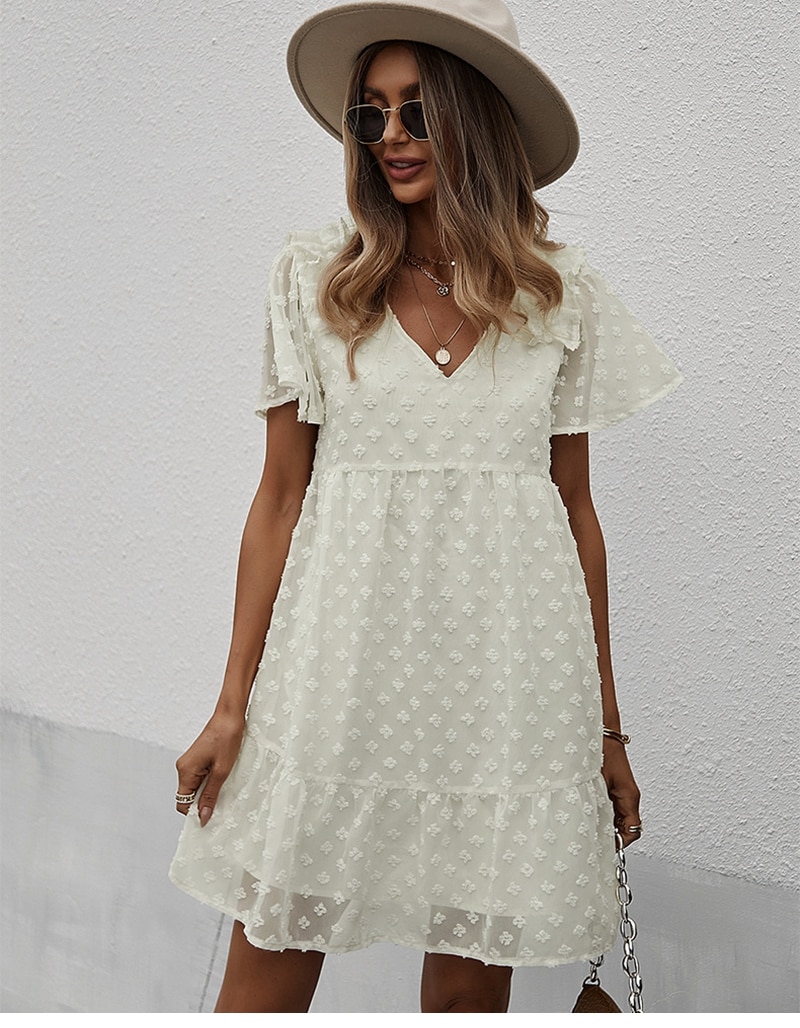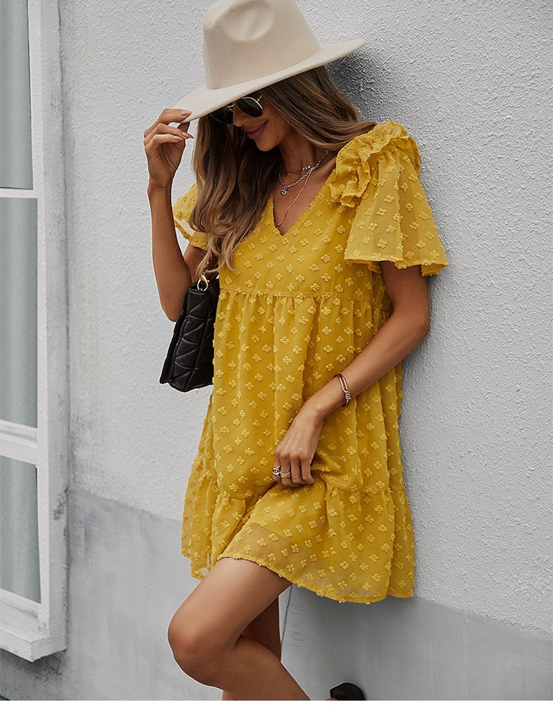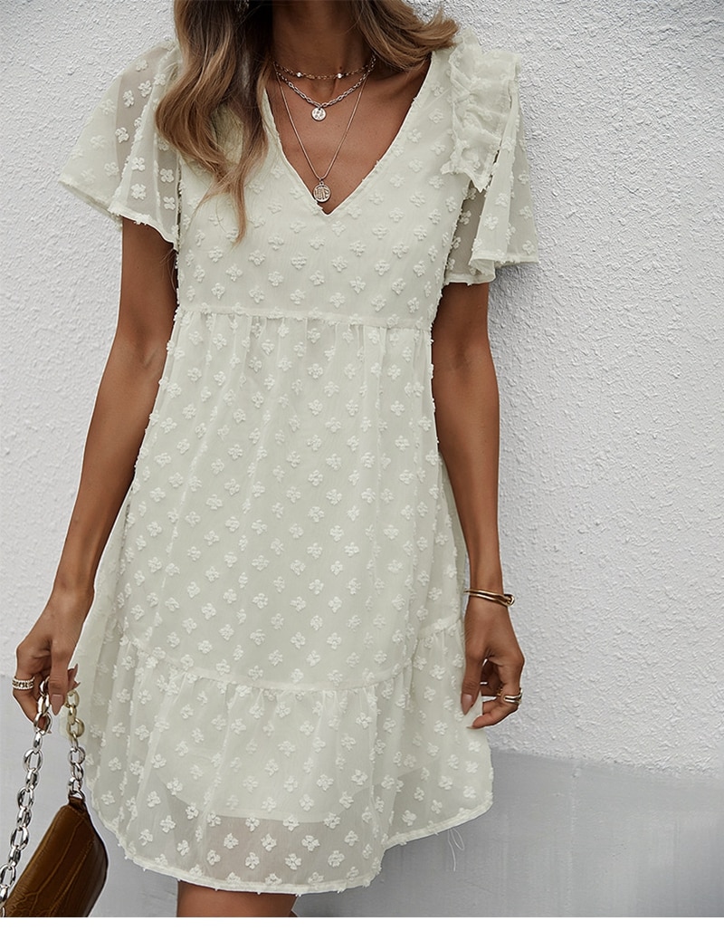 Spring Party Short Dress Women Sexy V Neck Butterfly Sleeve Hairball Holiday Style Ladies Solid Summer Mini Dresses New