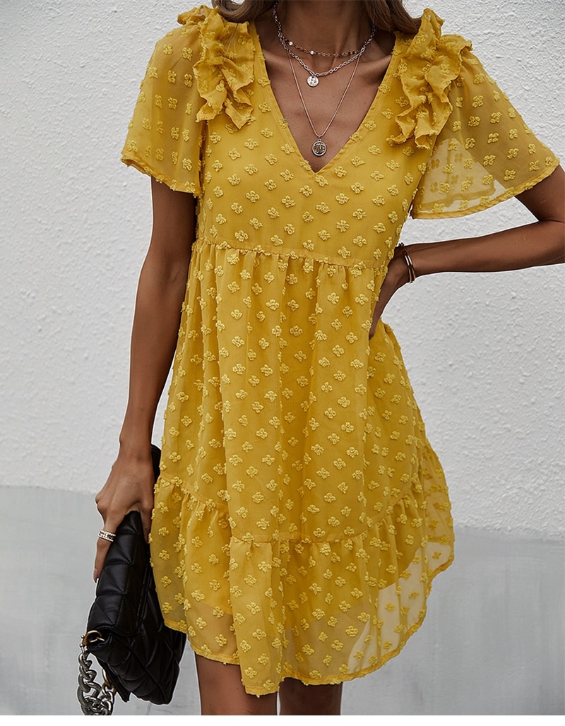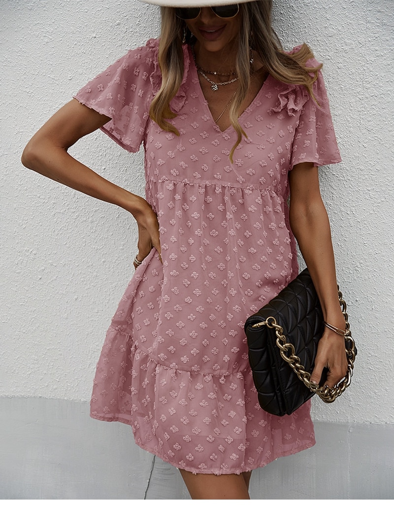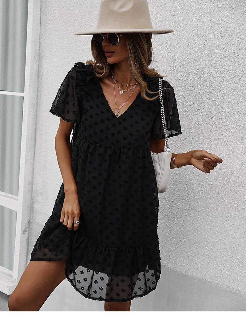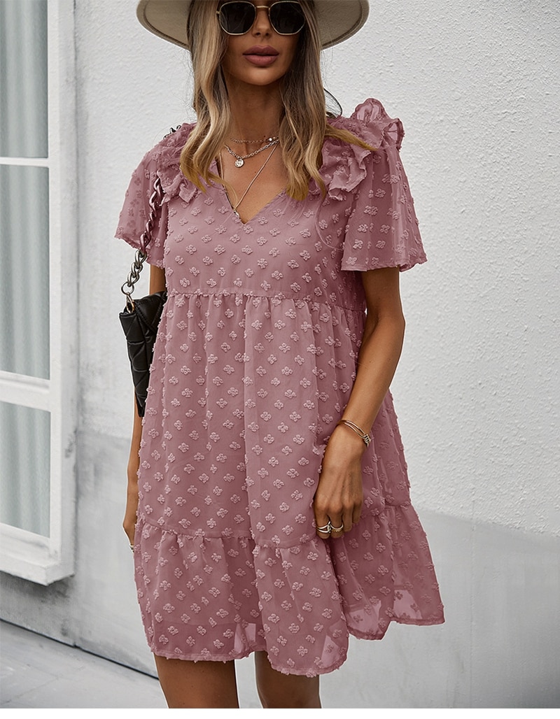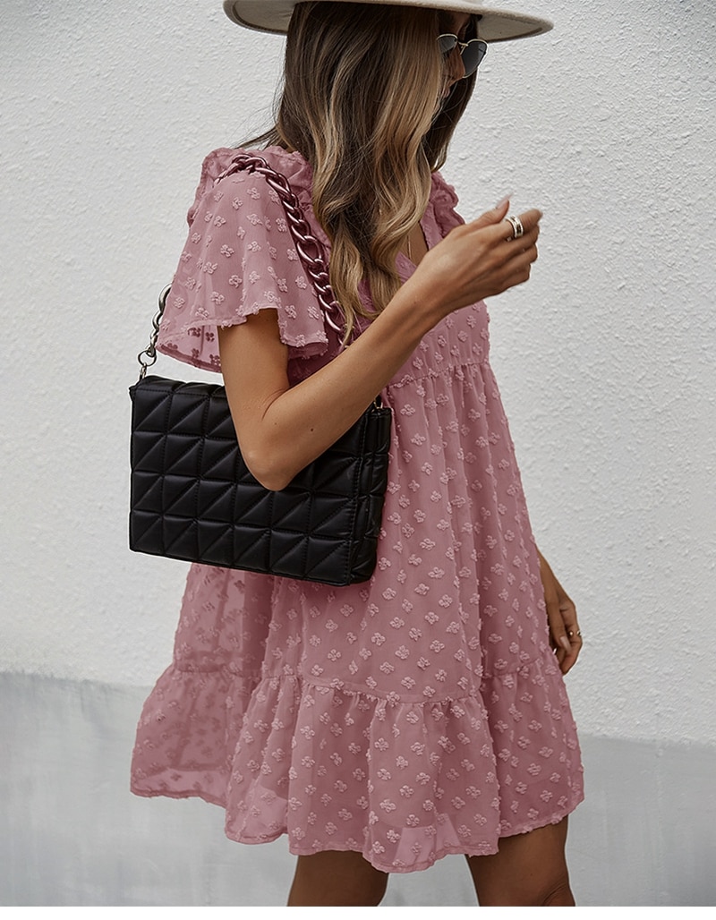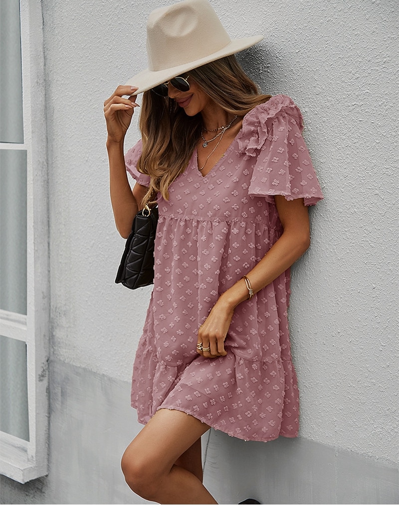 Spring Party Short Dress Women Sexy V Neck Butterfly Sleeve Hairball Holiday Style Ladies Solid Summer Mini Dresses New