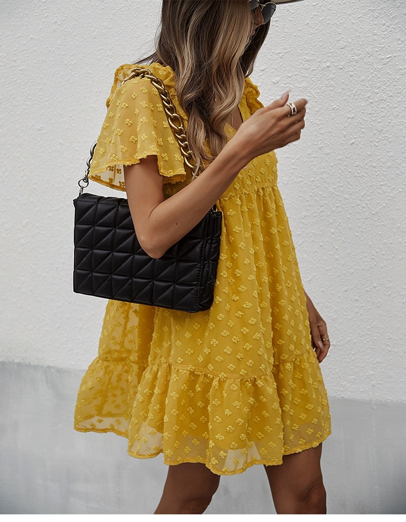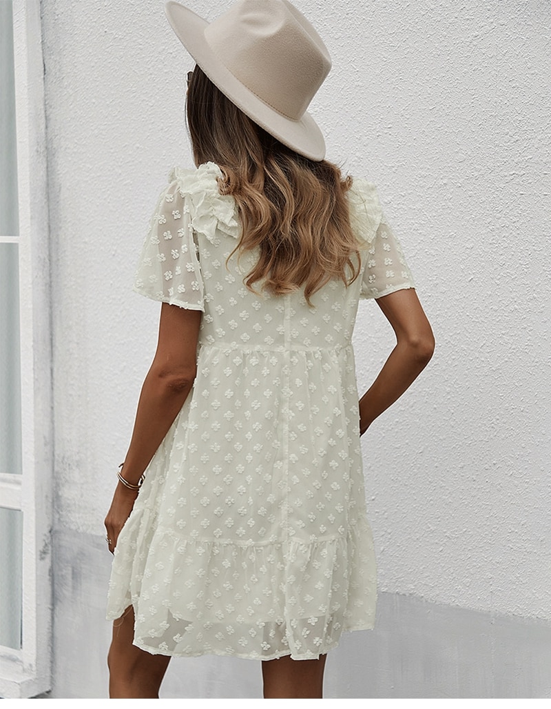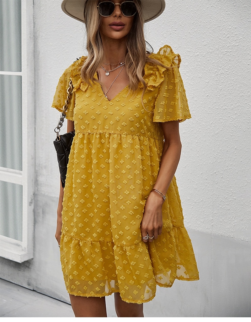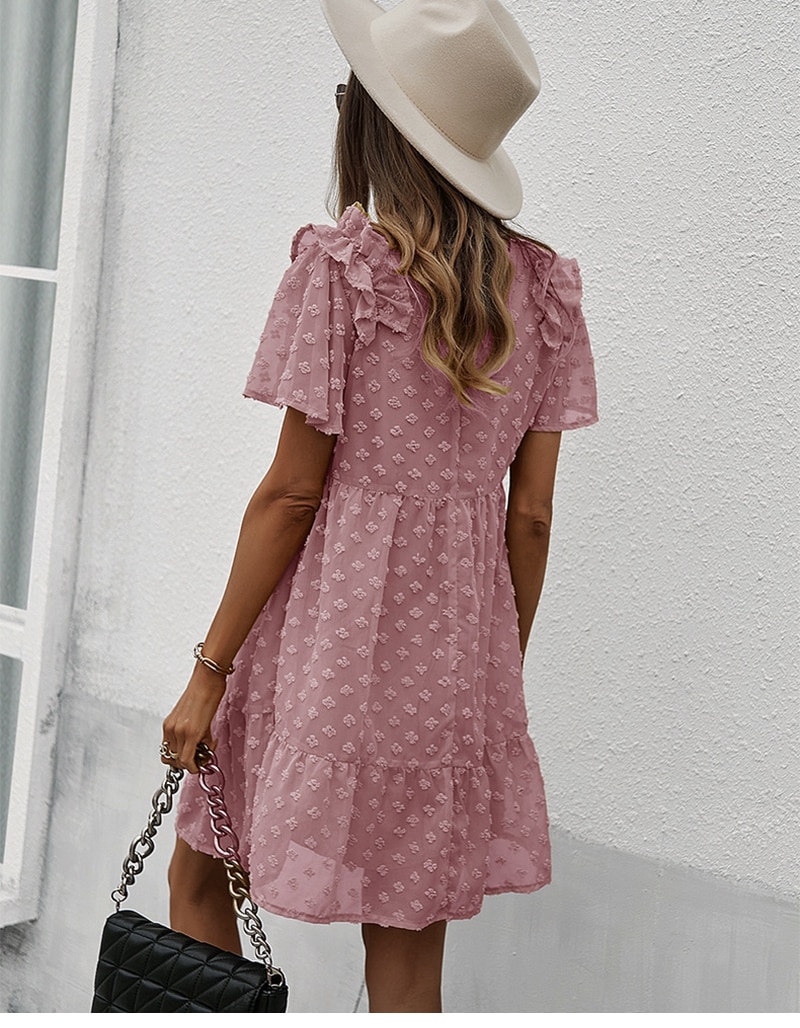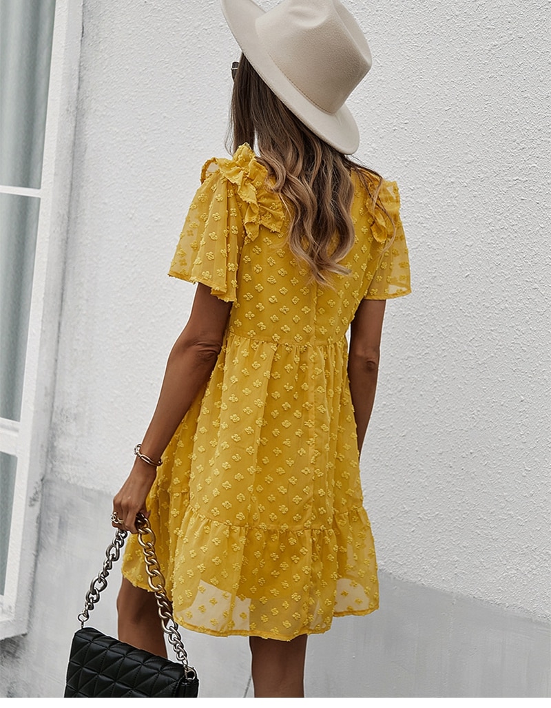 Spring Party Short Dress Women Sexy V Neck Butterfly Sleeve Hairball Holiday Style Ladies Solid Summer Mini Dresses New