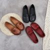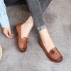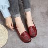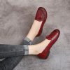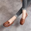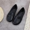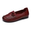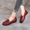 Spring Summer Ethnic Style Genuine Leather Shoes Women’s Flat Soft Comfortable Slip on Loafers Flower Mother Shoe