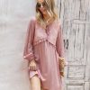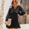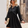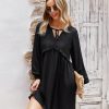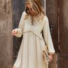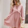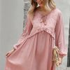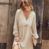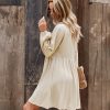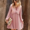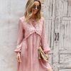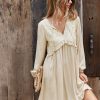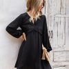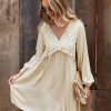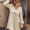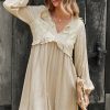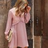 Spring Summer Fashion Chic Womne Dress Ruffles V Neck Long Sleeve High Waist Solid Ladies Dress