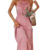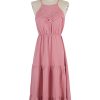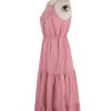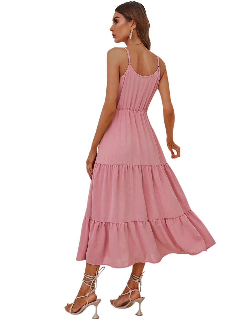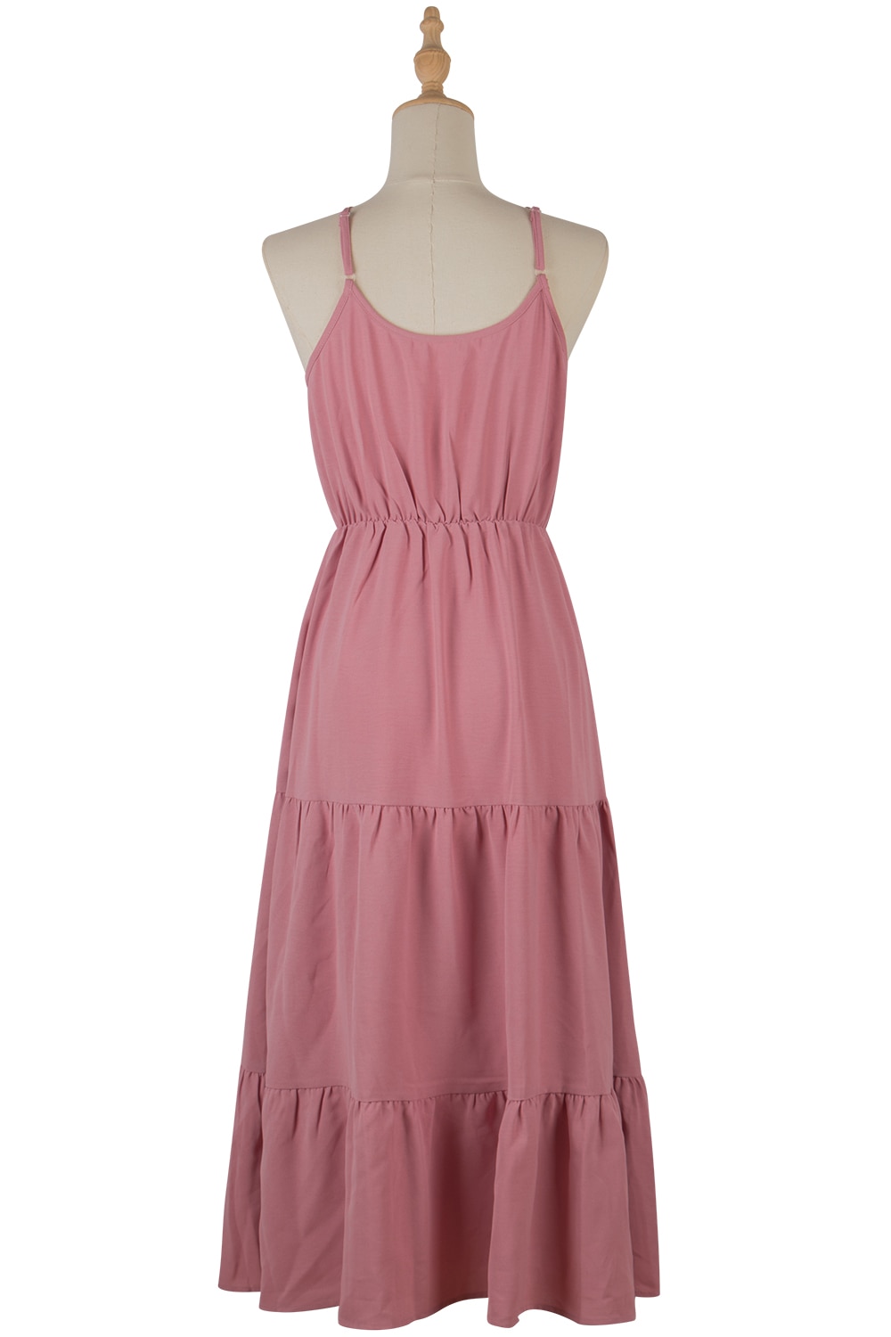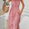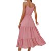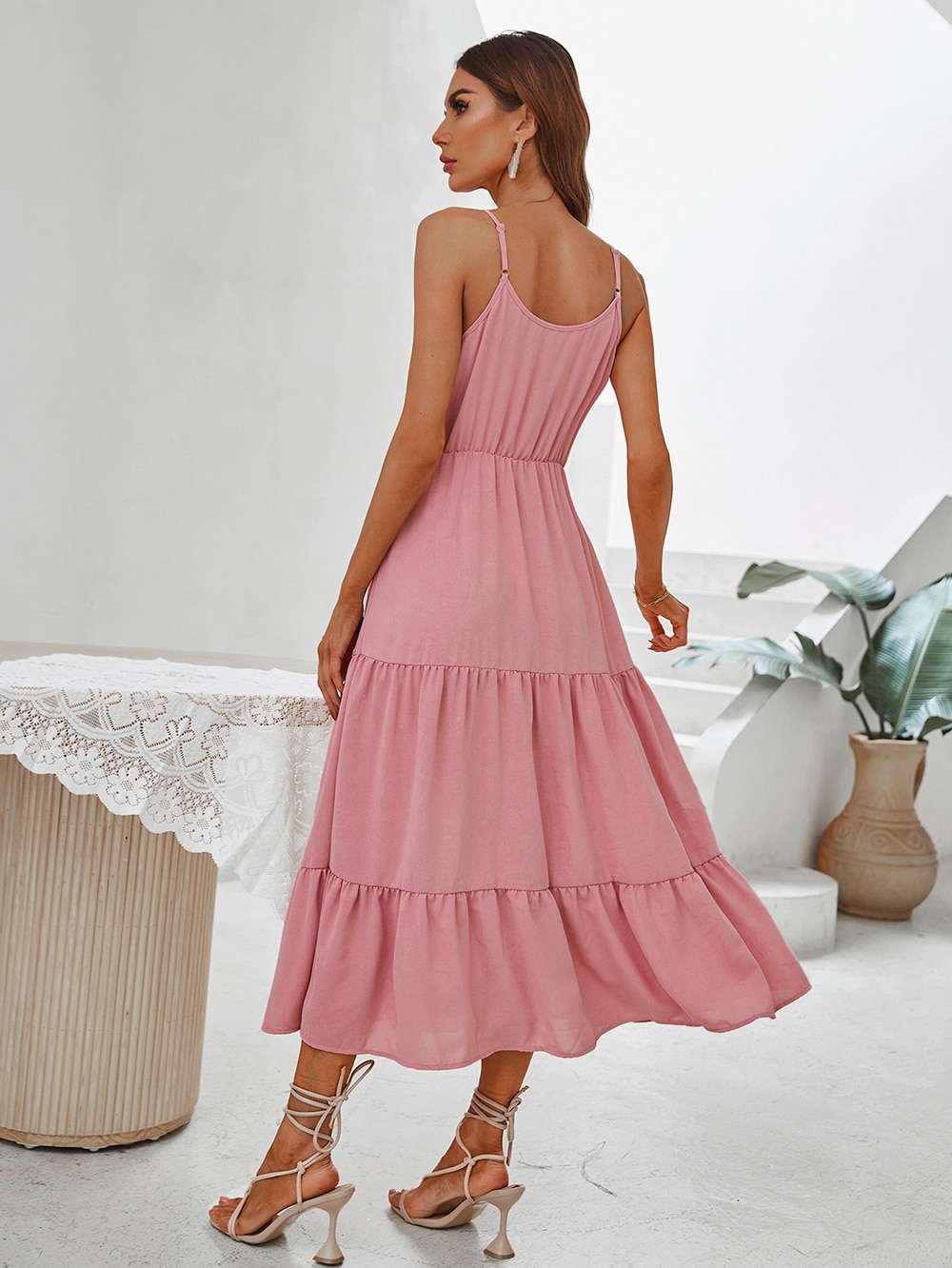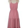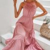 Spring Summer High Waist Mediumn Long Sling Dress Bohemian Multi-Layered Swing Pink Halter Dress