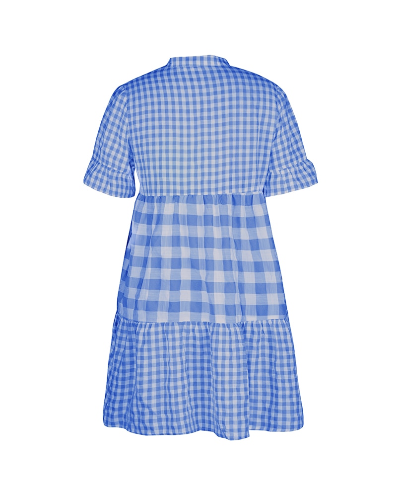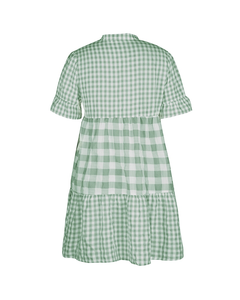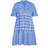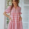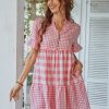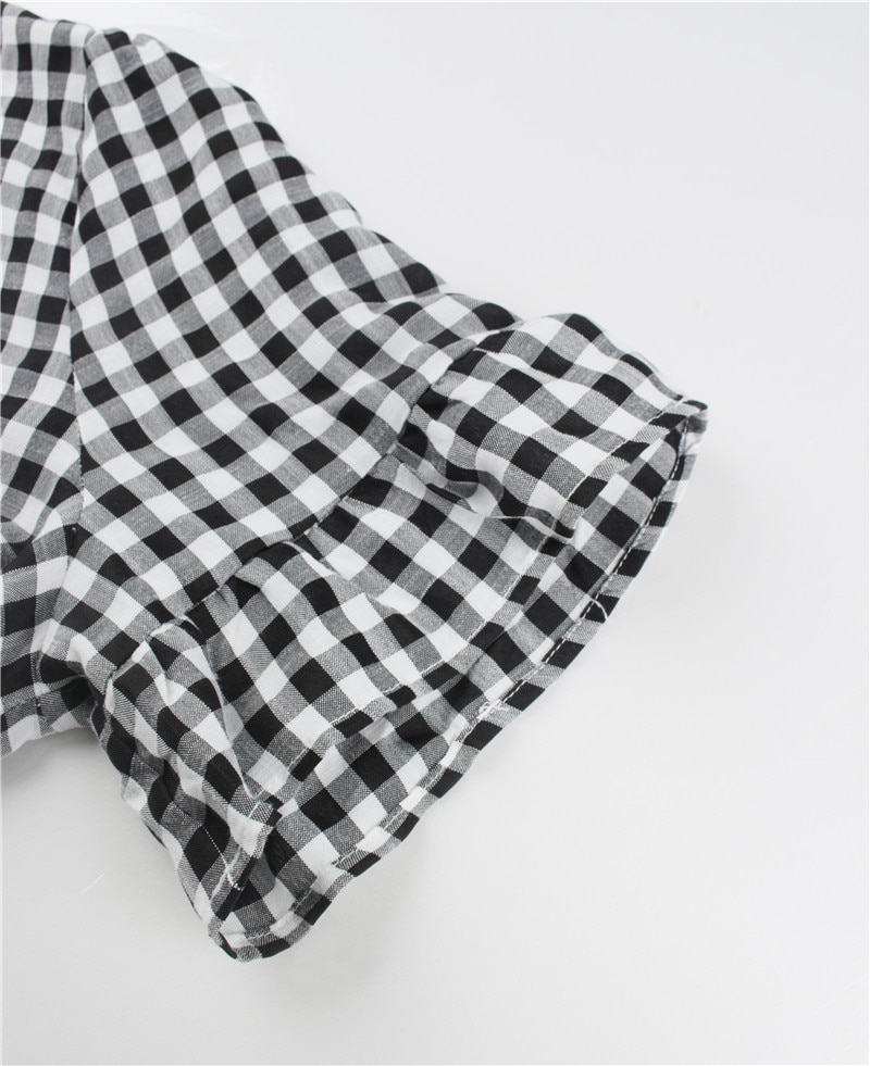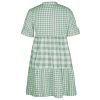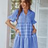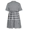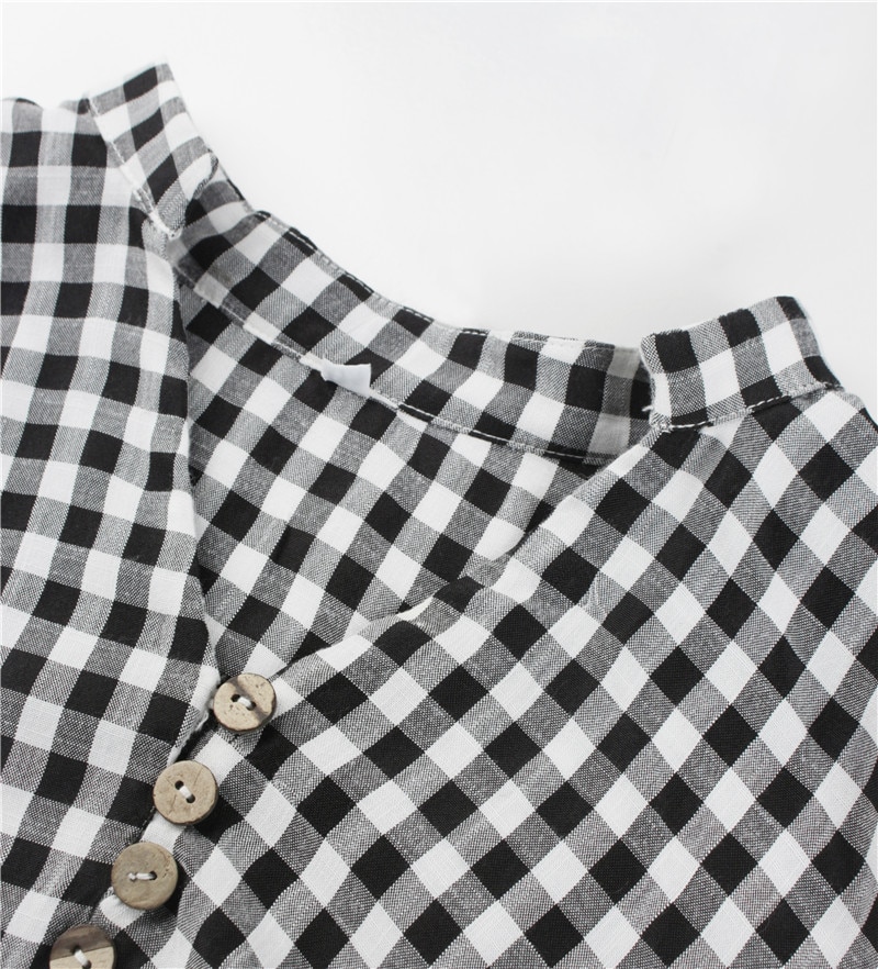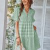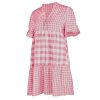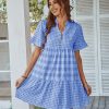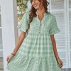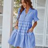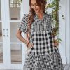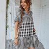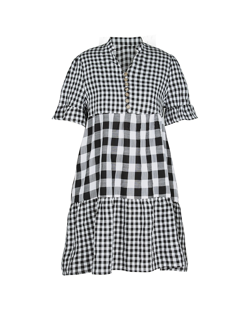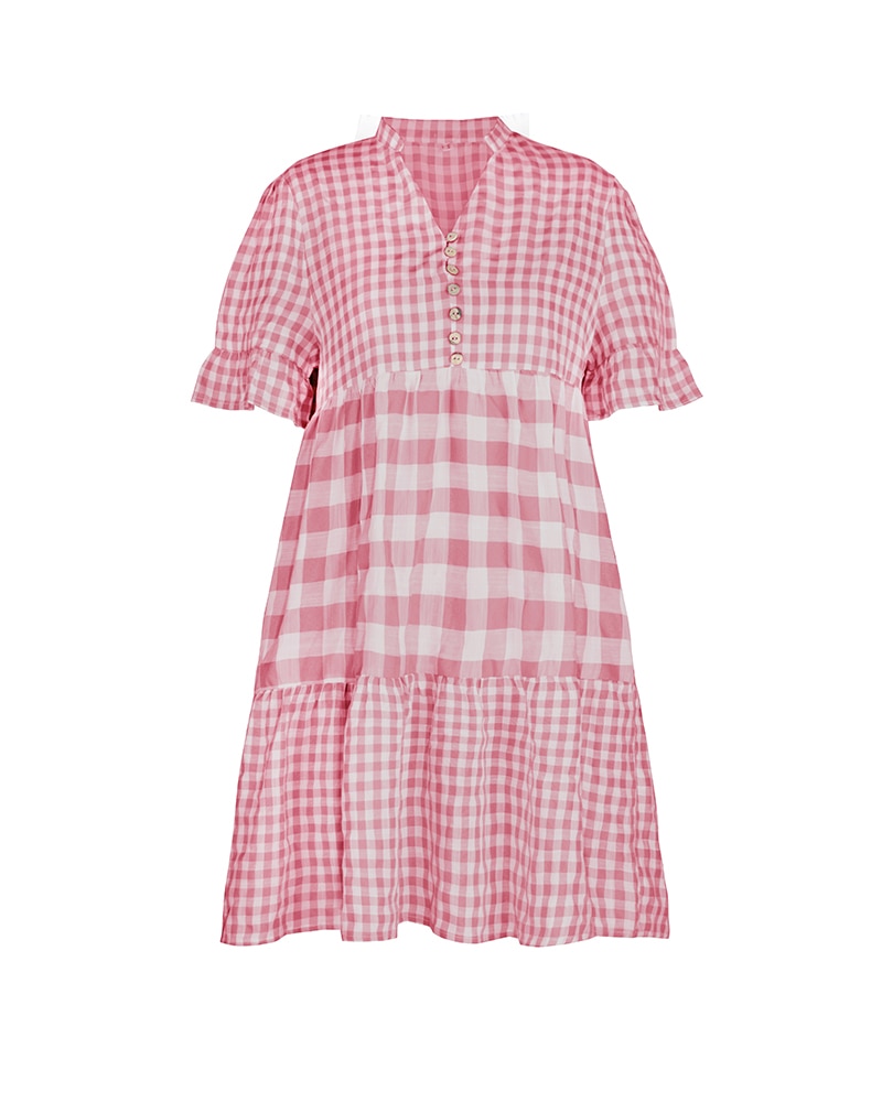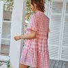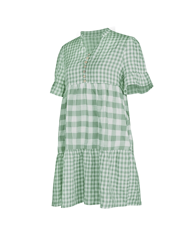 Spring Summer Loose Short Plaid Dress Women Casual Button V-Neck Temperament Patchwork Short Sleeve Mini Dress