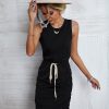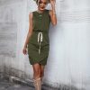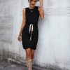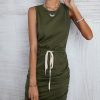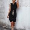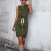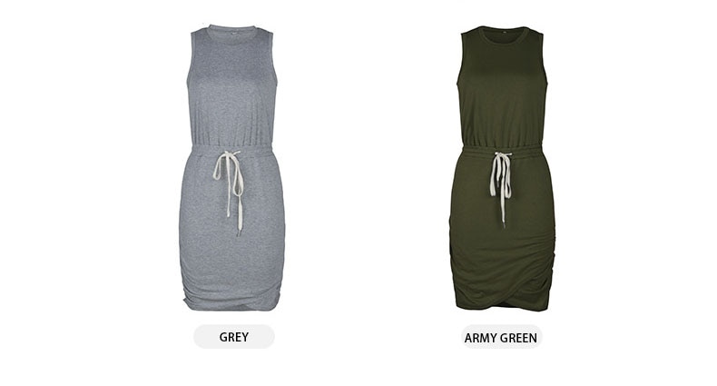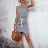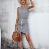 Spring Summer O Neck Sleeveless Solid Color Lace Up Casual Short Dress For Women Fashion All Match Chic Dresses