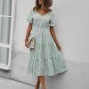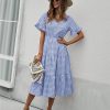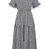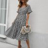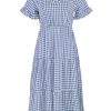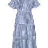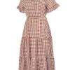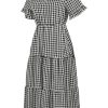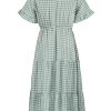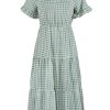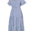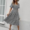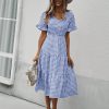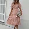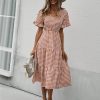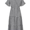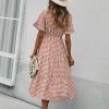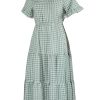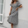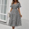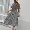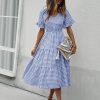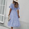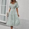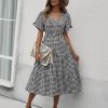 Spring Summer Plaid Casual Long Dress Women V Neck Slim High Waist Ladies A Line Party Maxi Dress