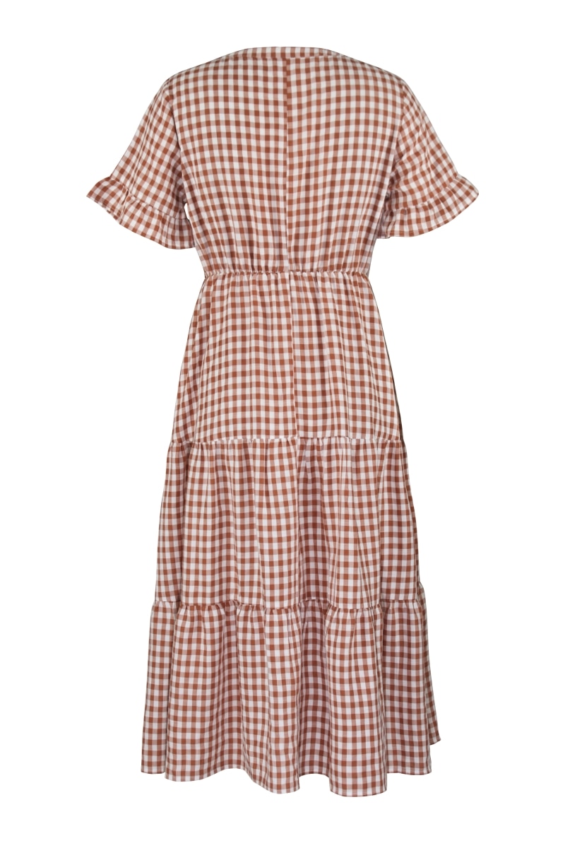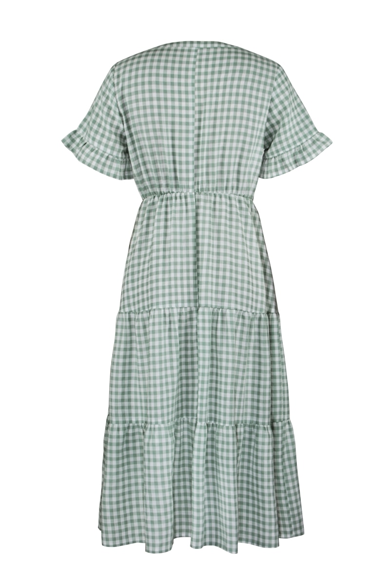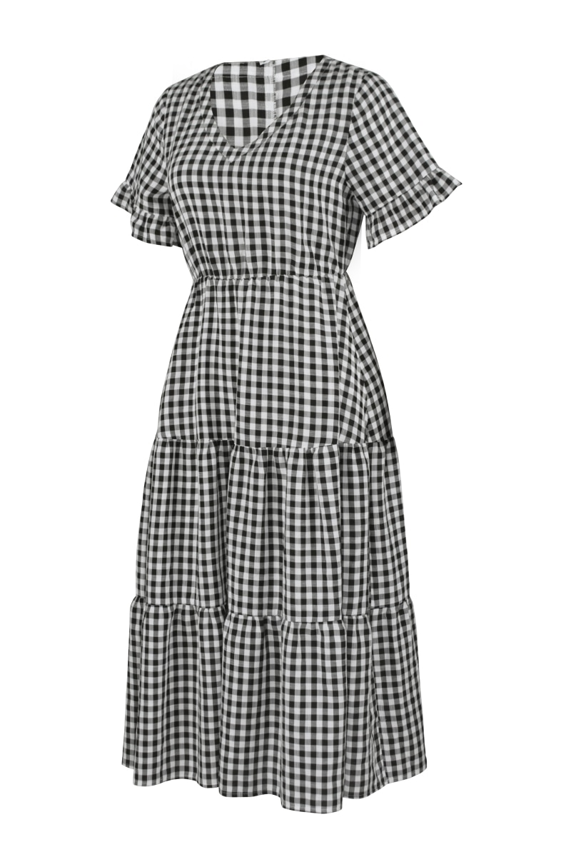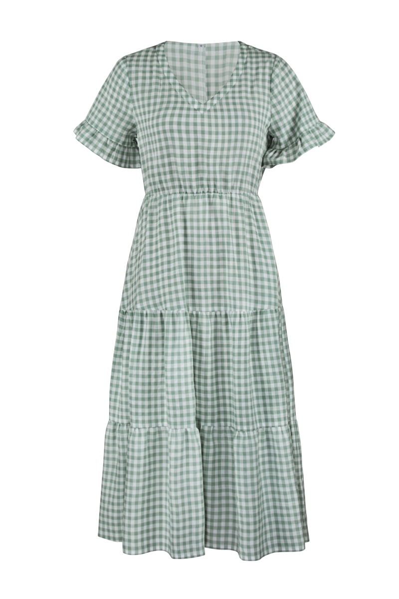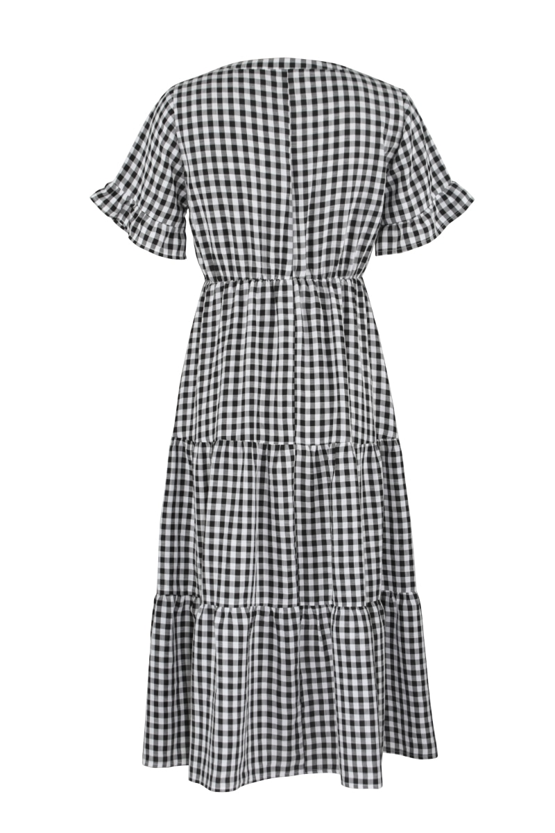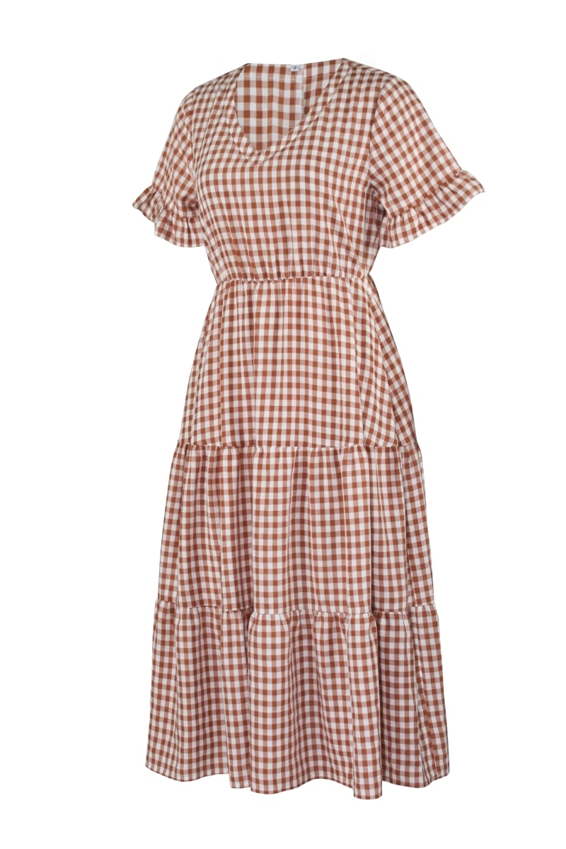 Spring Summer Plaid Casual Long Dress Women V Neck Slim High Waist Ladies A Line Party Maxi Dress