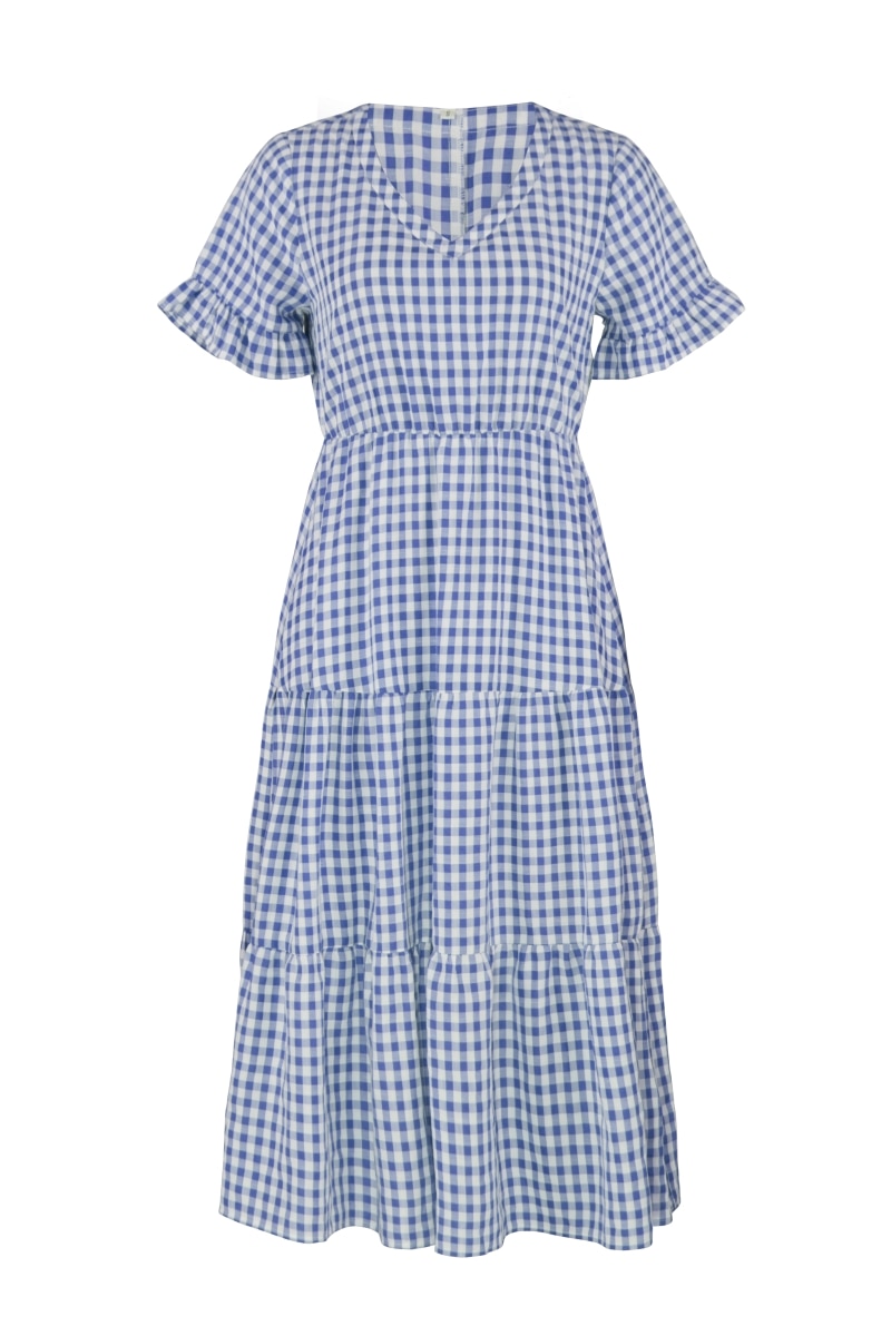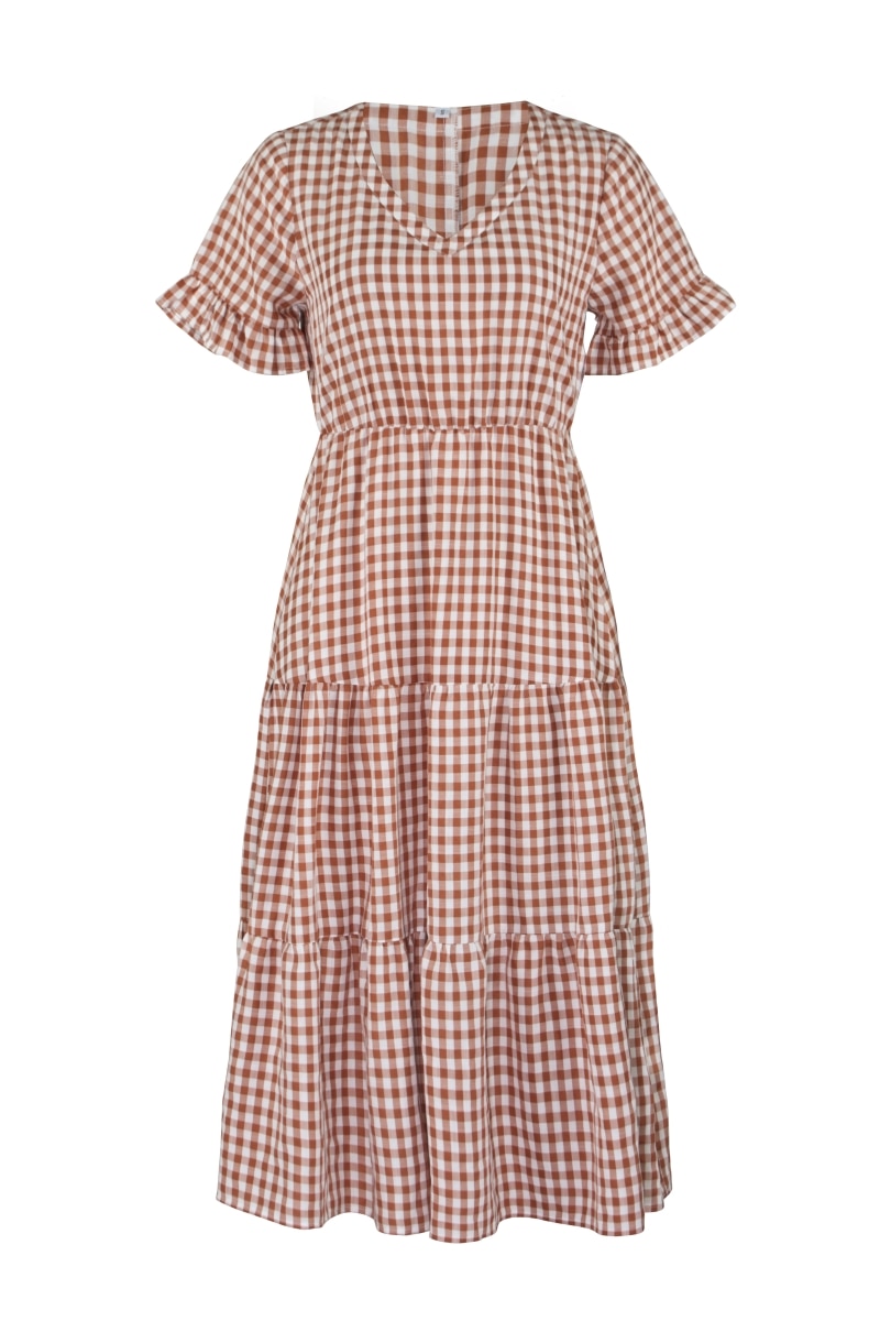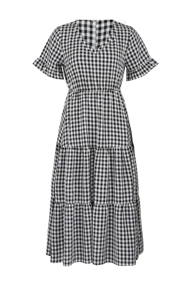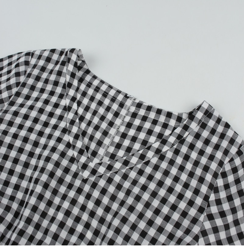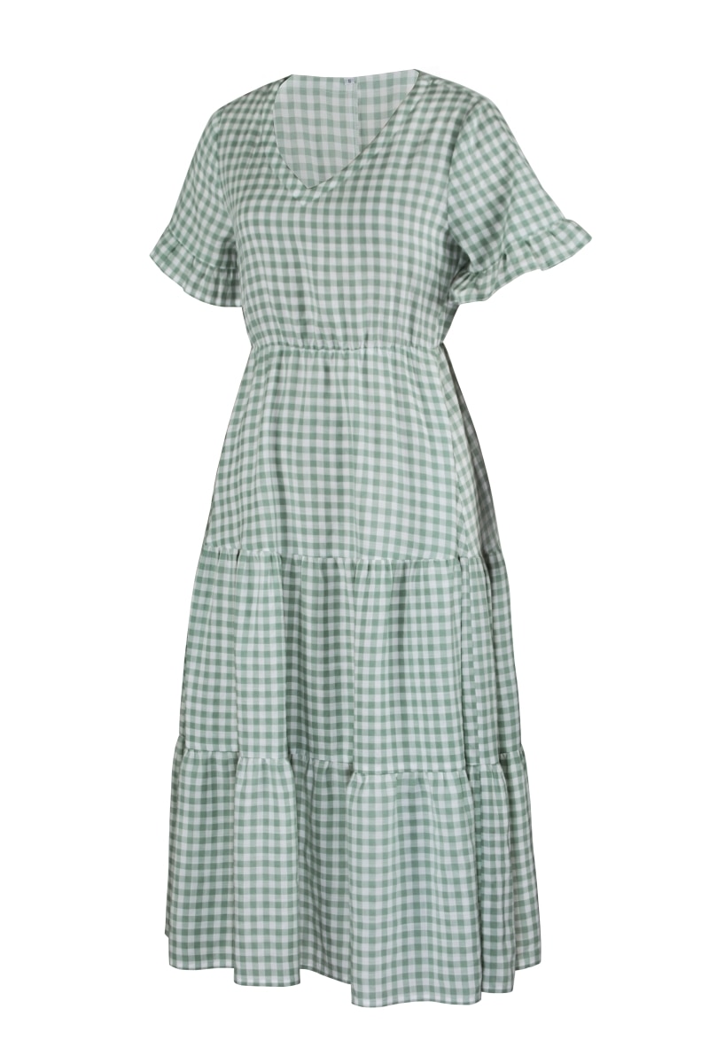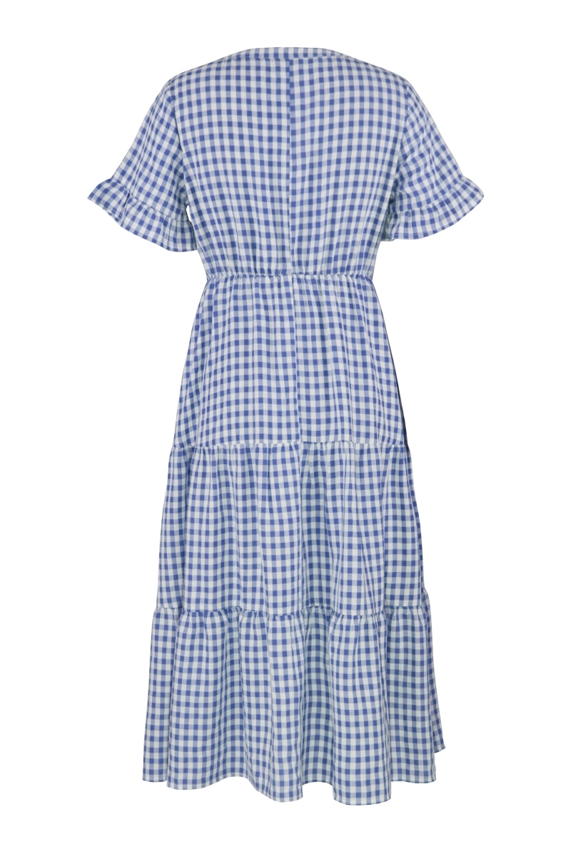 Spring Summer Plaid Casual Long Dress Women V Neck Slim High Waist Ladies A Line Party Maxi Dress