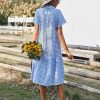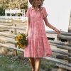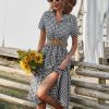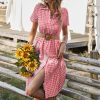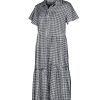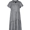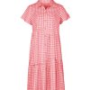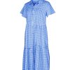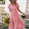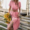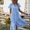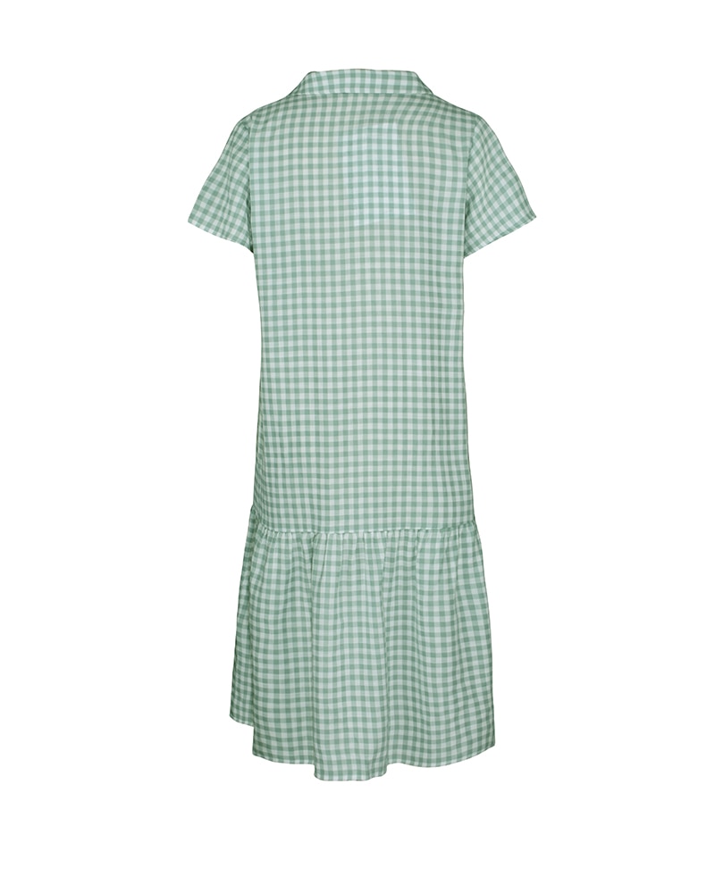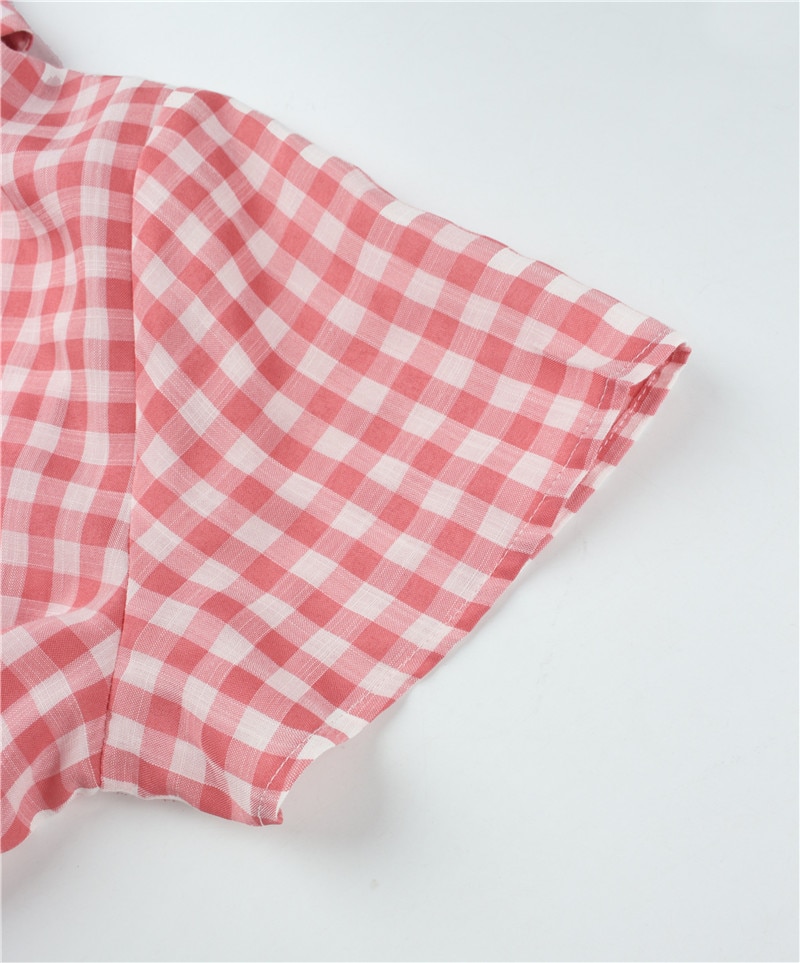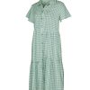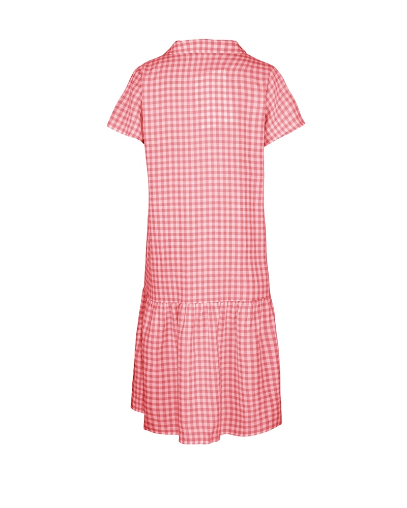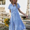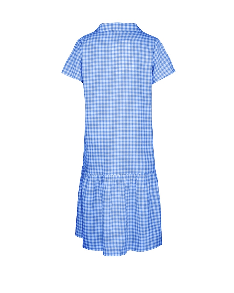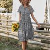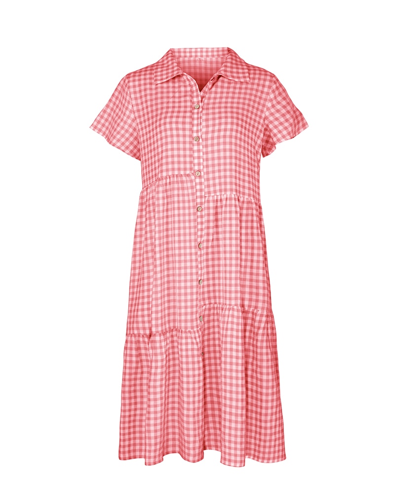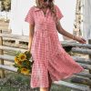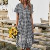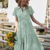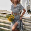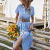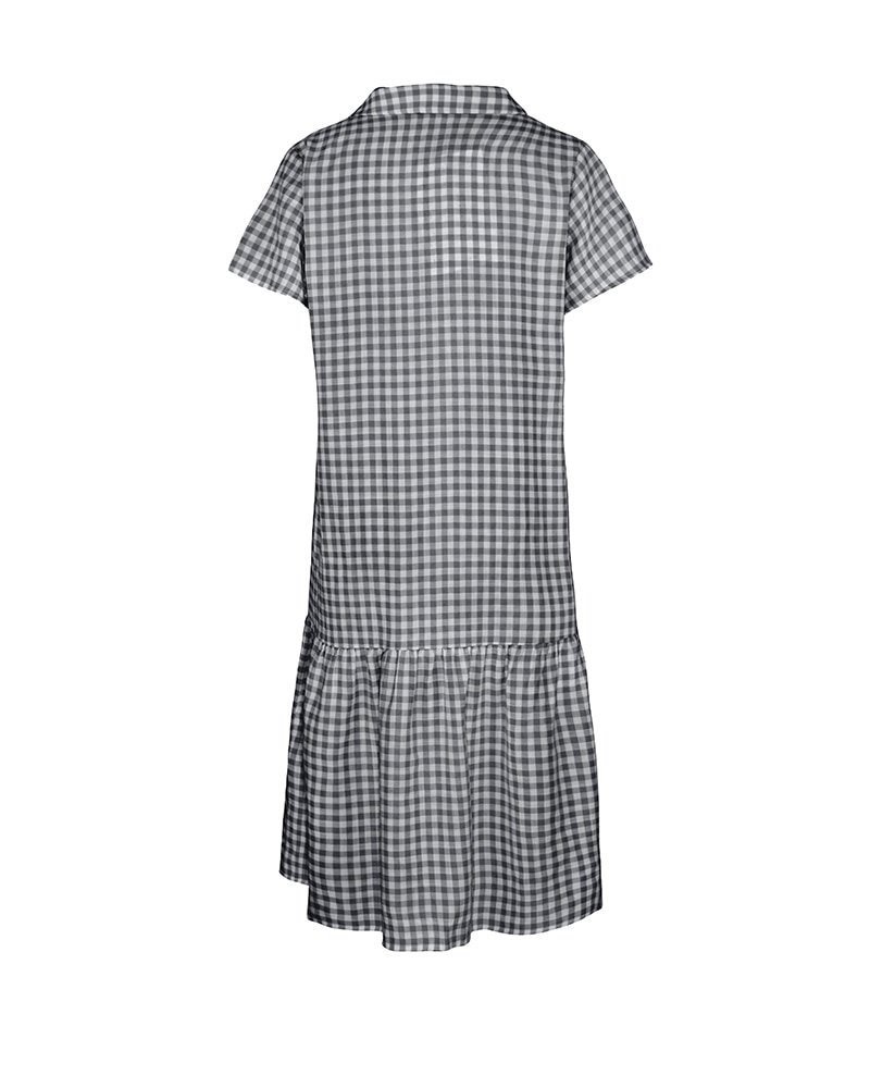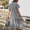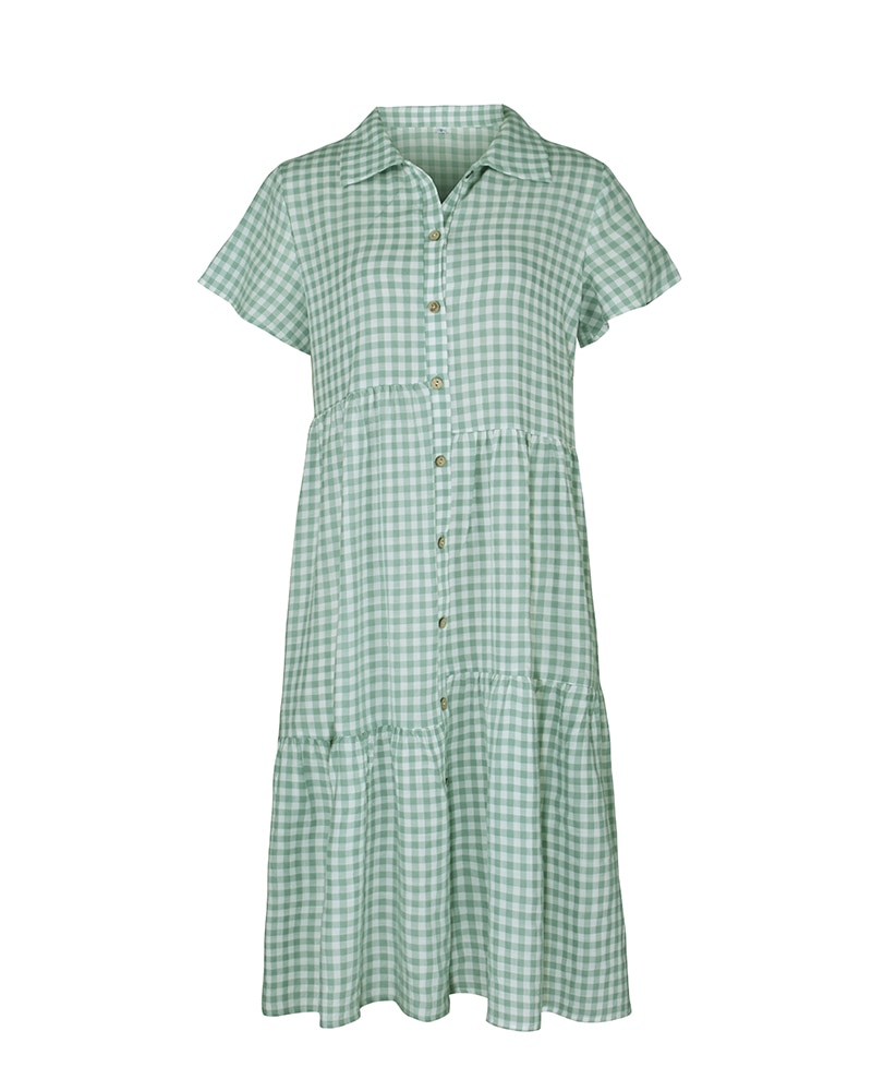 Spring Summer Plaid Shirt Dress Women Casual Short Sleeve High Waist Loose Dresses For Ladies Leisure Medium Long Dress