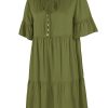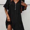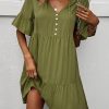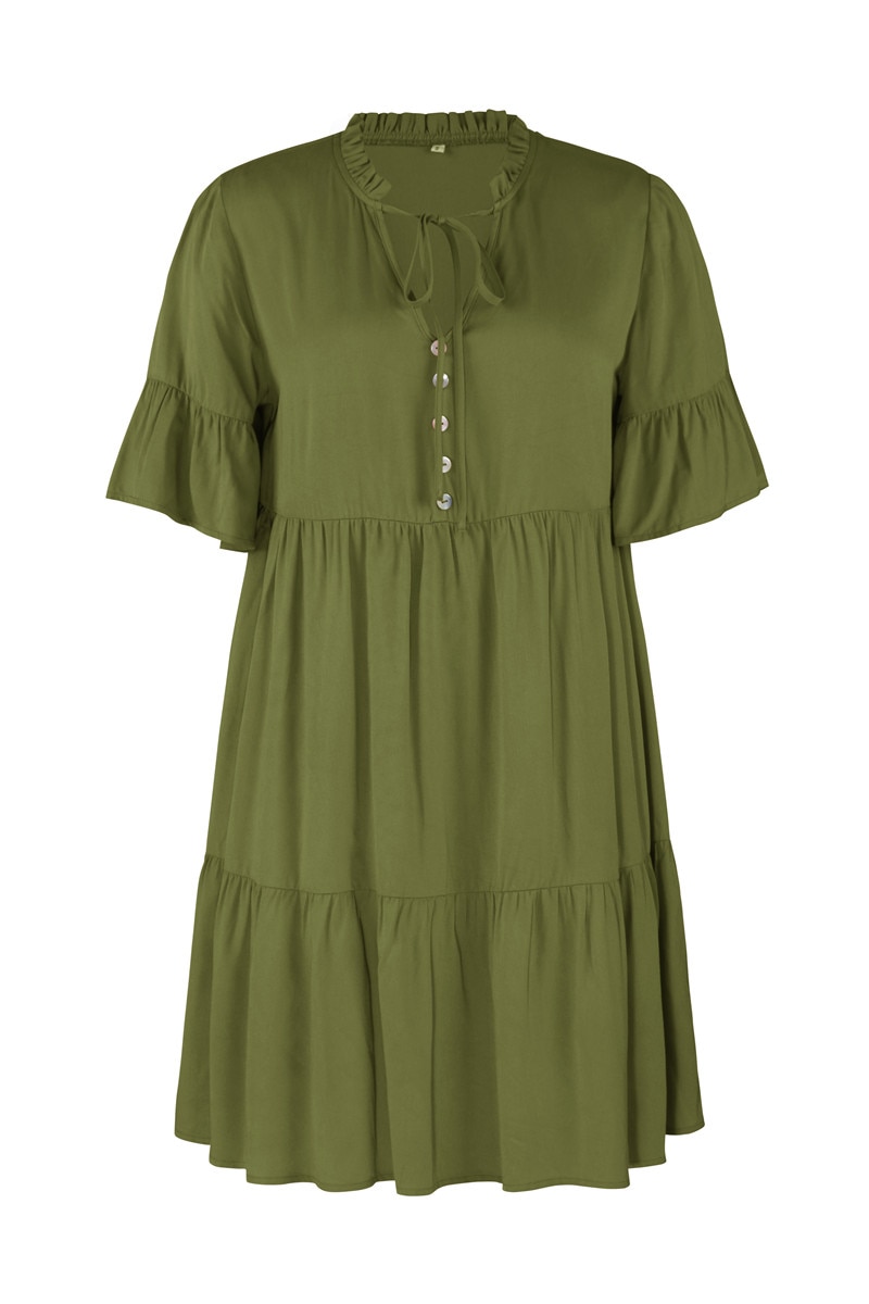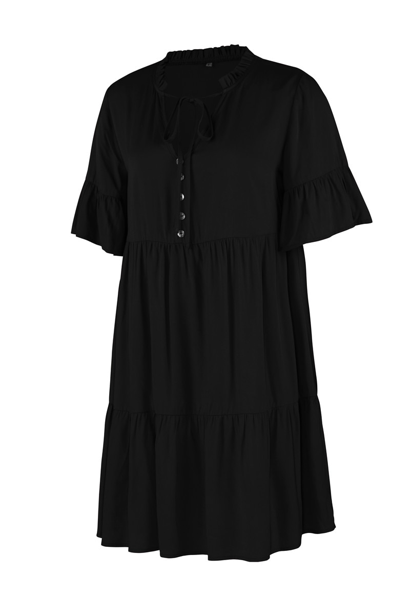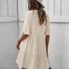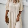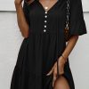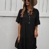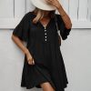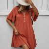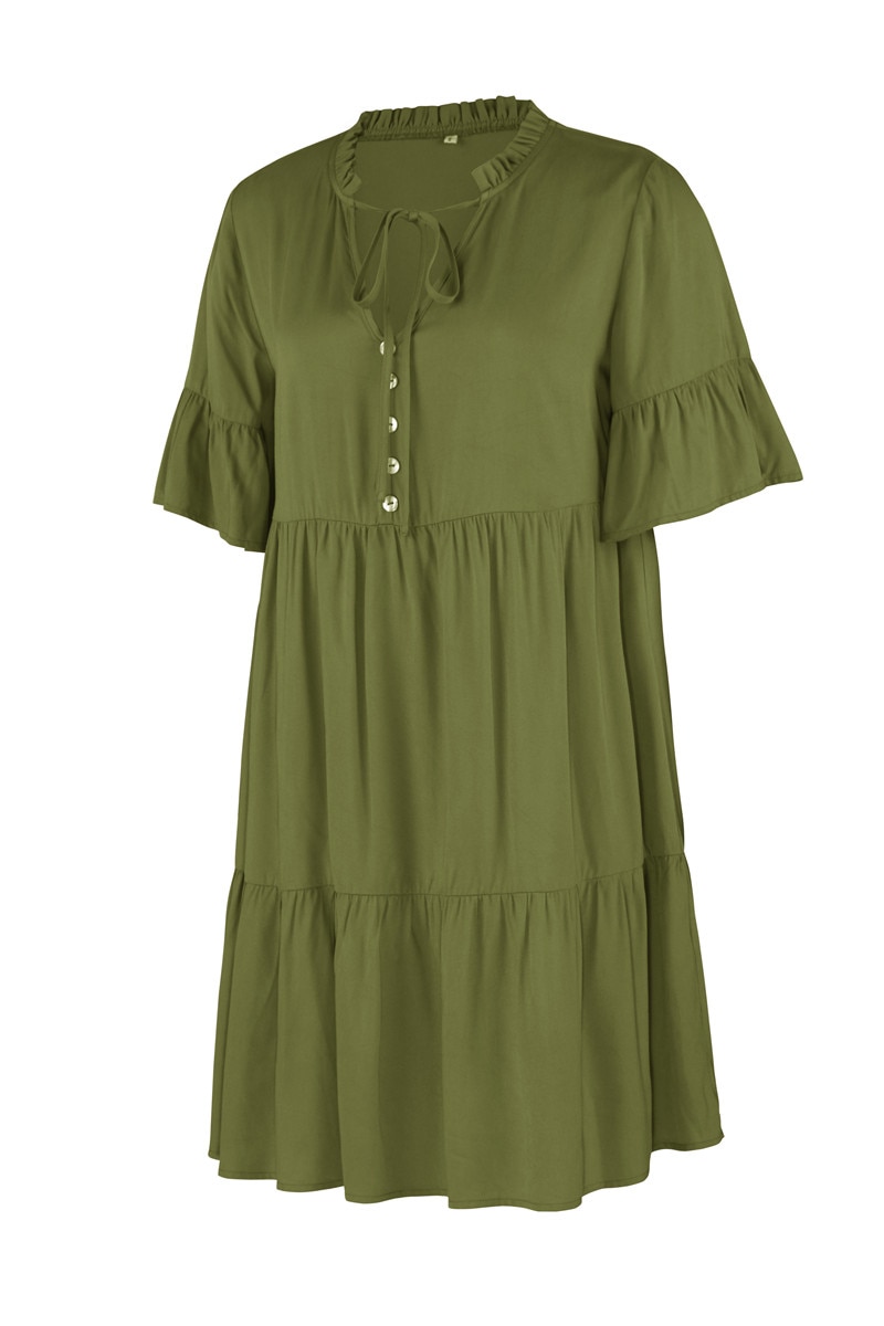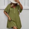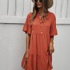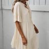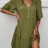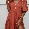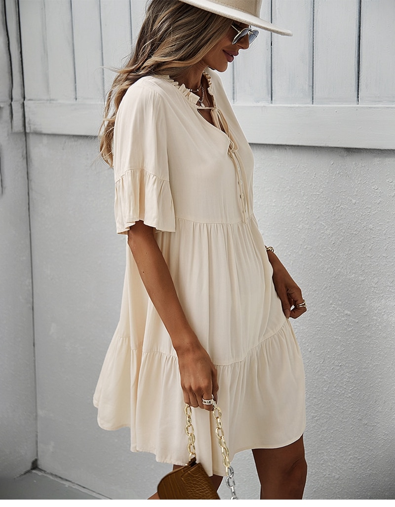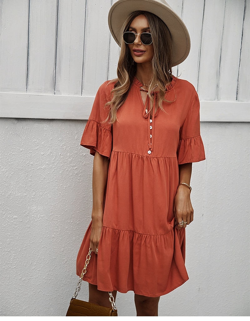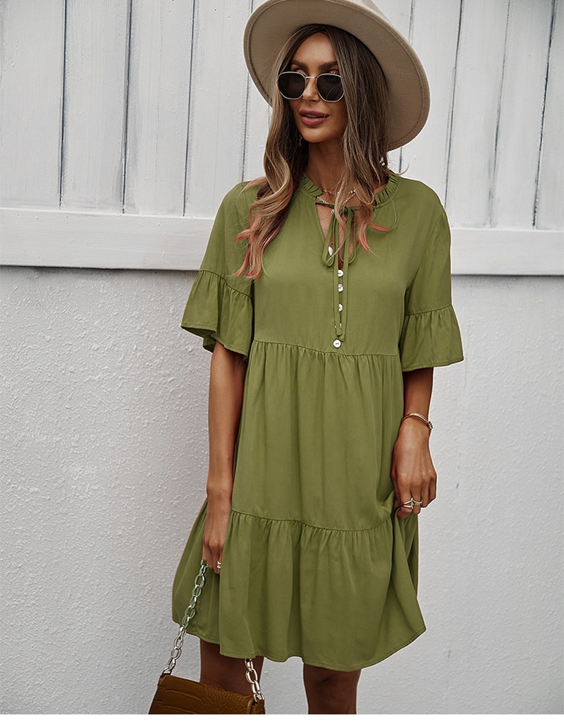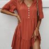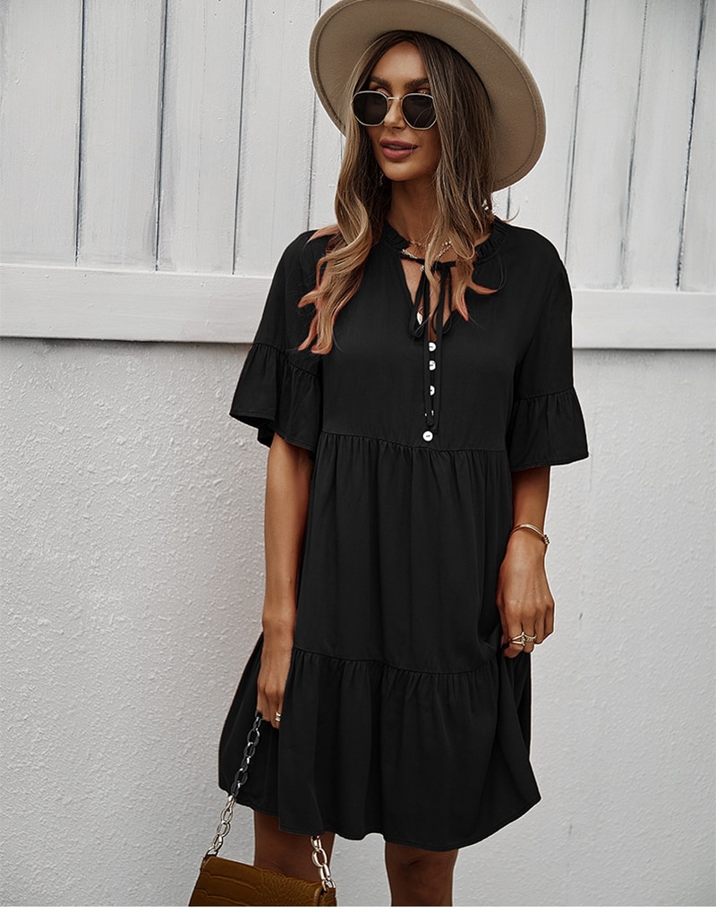 Spring Summer Solid Short Dress Women Casual Single Breasted Half Sleeve Ladies Temperament High Wasit Party Dresses New