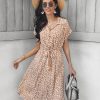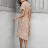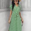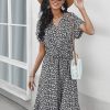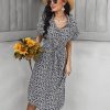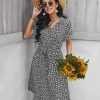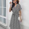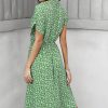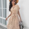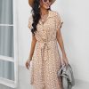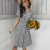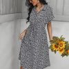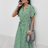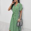 Spring Summer Turn Down Collar Solid Color Button Short Sleeve A Line Causal Floral Dress For Women Chic Dresses