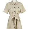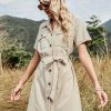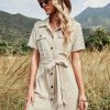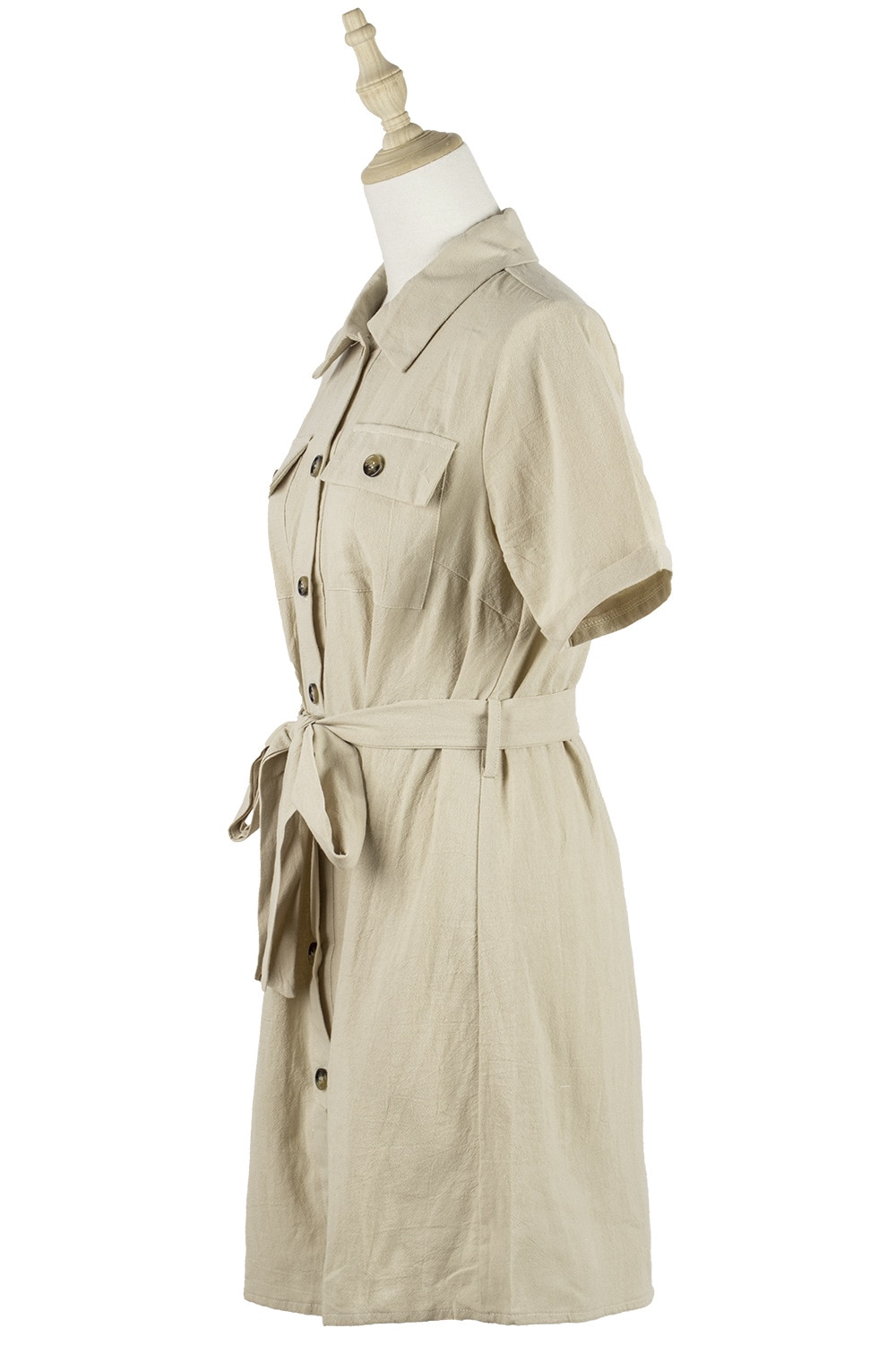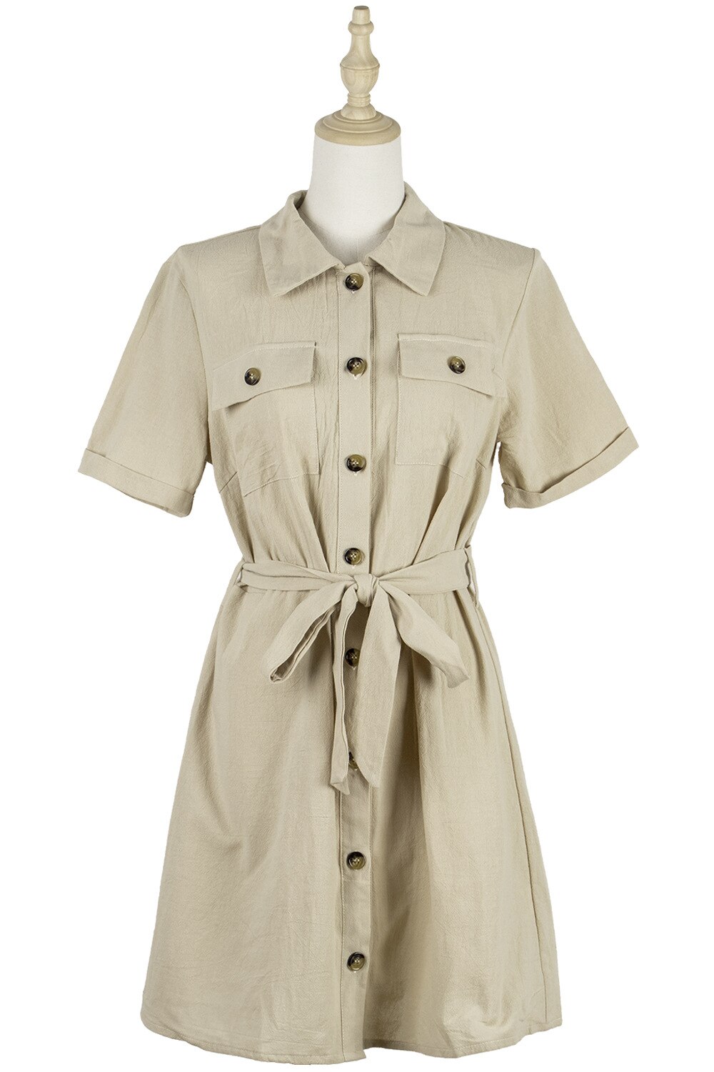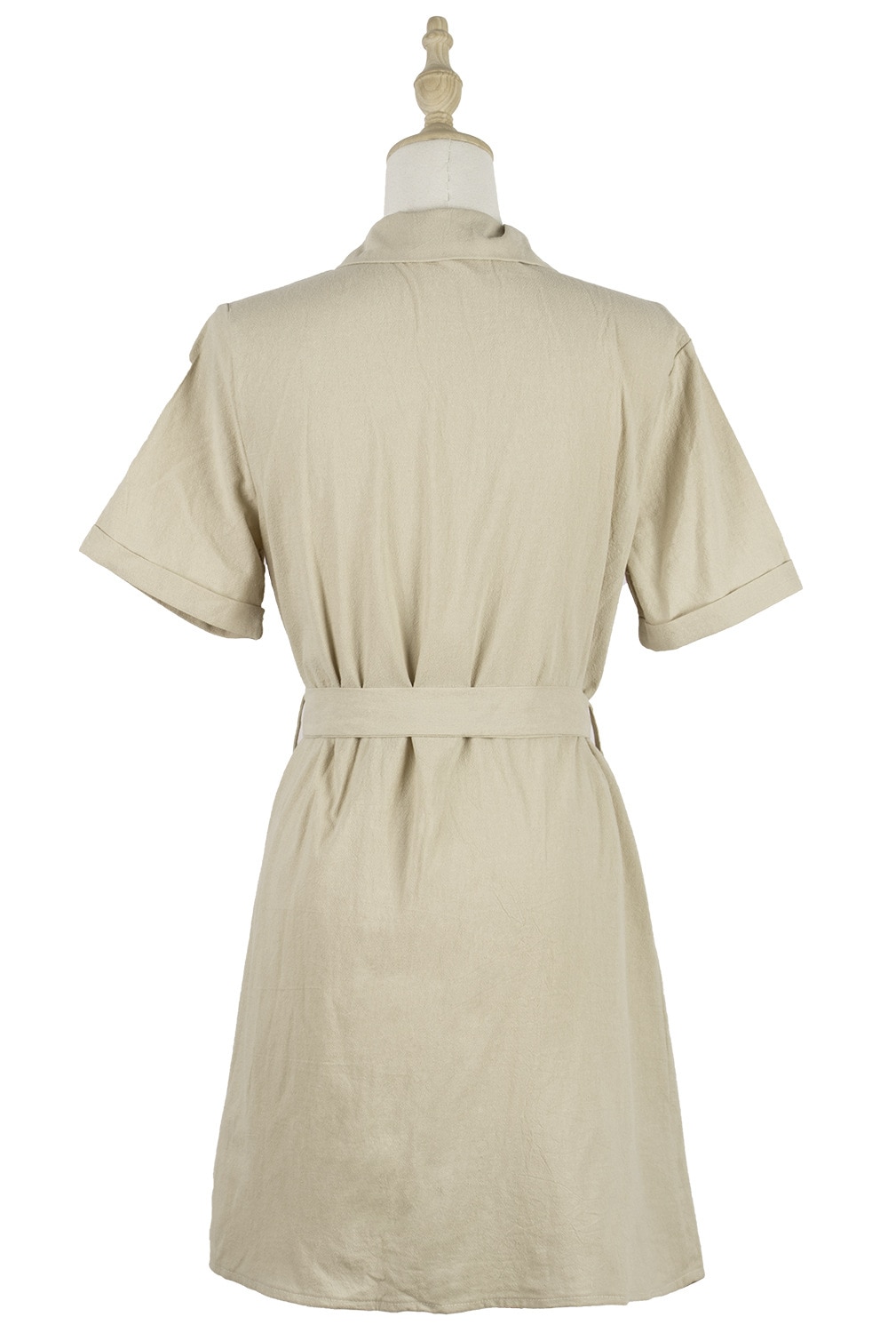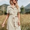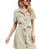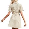 Spring Summer Women Solid Color Lapel Single Breasted Pocket Short Sleeve Oversized Loose Dress For Fashion