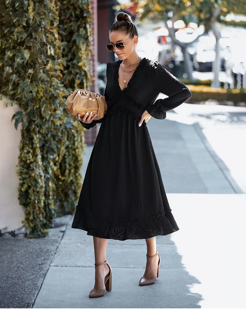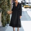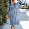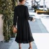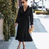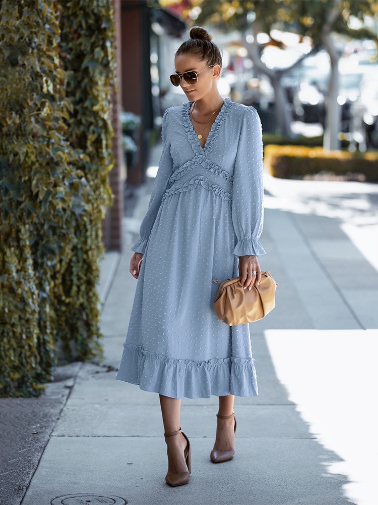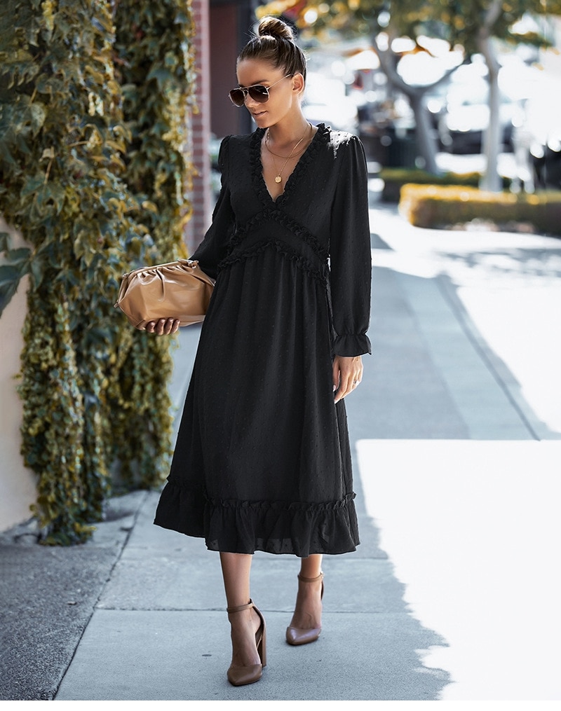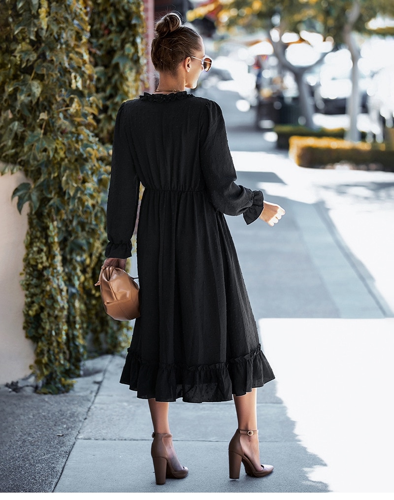 Spring Temperament Long Dress Women Casual Full Sleeve Ruffles V Neck Solid Dresses For Ladies High Waist Party Dress