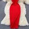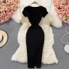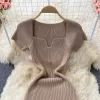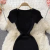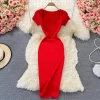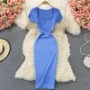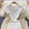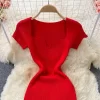 Square Collar Knitted Bodycon Dress for Women Summer Office Lady