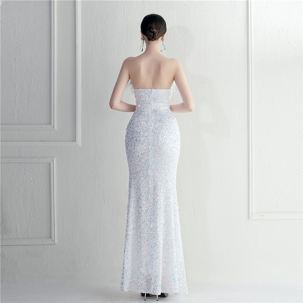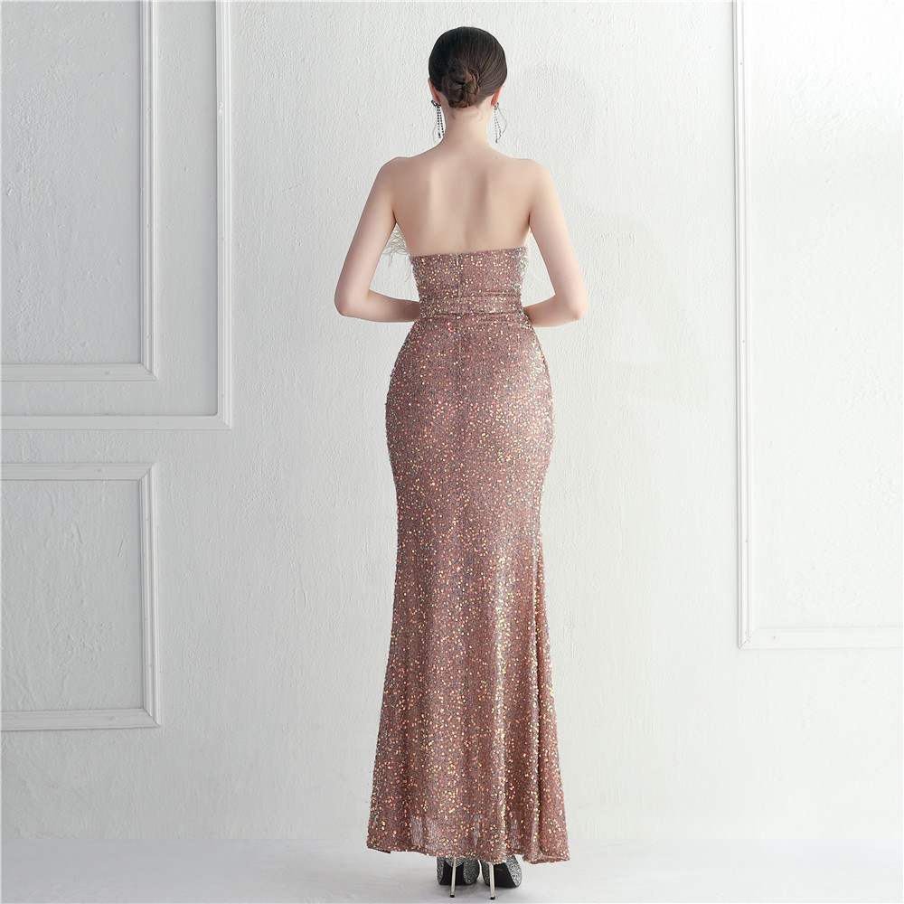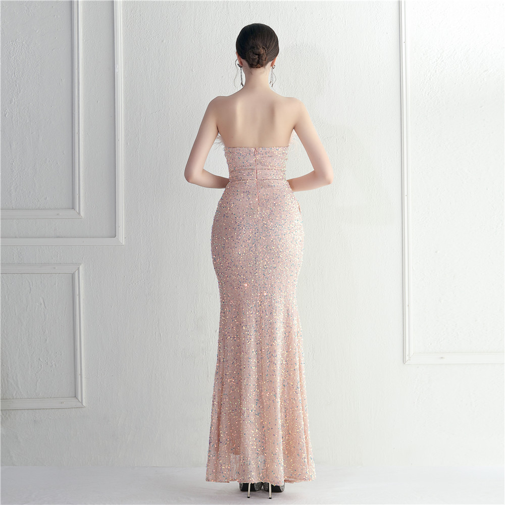 This strapless sequin slit mermaid maxi dress brings elegant glamour to any evening event! The slim – fit design hugs your curves, while the high – waist and thigh – high slit add a flirty touch. Made with a polyester – based fabric (50% – 70% polyester content) adorned with sequins, it offers a comfortable yet stylish fit. Perfect for galas, weddings, formal dinners, or special occasions, especially in summer when you want to stand out. Choose from colors like Black, Burgundy, Dark Green, Blush Pink, White, or Pink, and sizes S to XXXXL to find your ideal match.