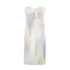 Summer 2025 Strapless Tie Dye Midi Dress for Women Slim Fit Polyester Party Dress