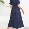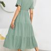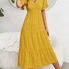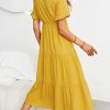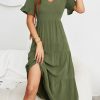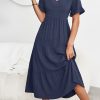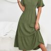 Summer Casual Long Dress Women Butterfly Sleeve V Neck Solid Elegant Sexy Temperament Party Dresses Leisure