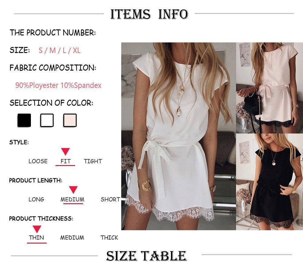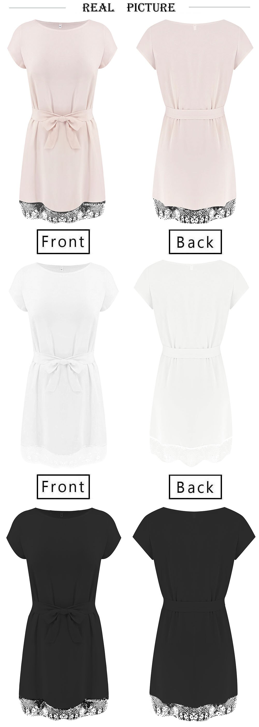Summer Dress Casual Round Neck Short Sleeve Lace Patchwork Bandage Mini Dress Black Pink White Women Dress - Hplify