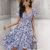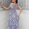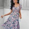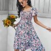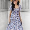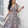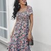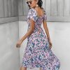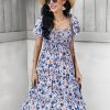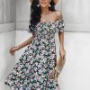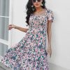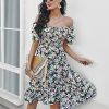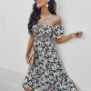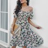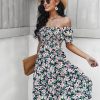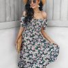 Summer Floral Off The Shoulder Dress For Women Casual Bohemian Short Sleeve Medium Long Dresses Female Leisure