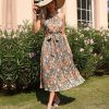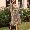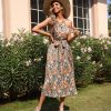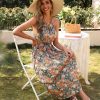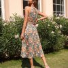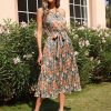 Summer Halter Neck Sleeveless Small Floral Sling Dress Lace High Waist Green Long Chic Dress