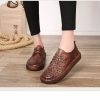 Sneakers Women Genuine Cow Leather Round Toe Lace-Up Ladies Retro Casual Flat Shoes Handmade Loafers