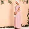 Summer Ladies Fashion Lapel Sequin Stitching Loose and Elegant Thin Arabian Powder Dress Long Women Dress (without Headscarf)