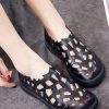 - Women cowhide soft bottom hollow sandals very comfortable casual walk shoes