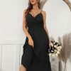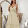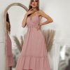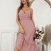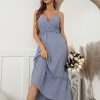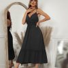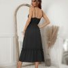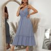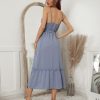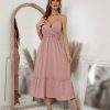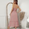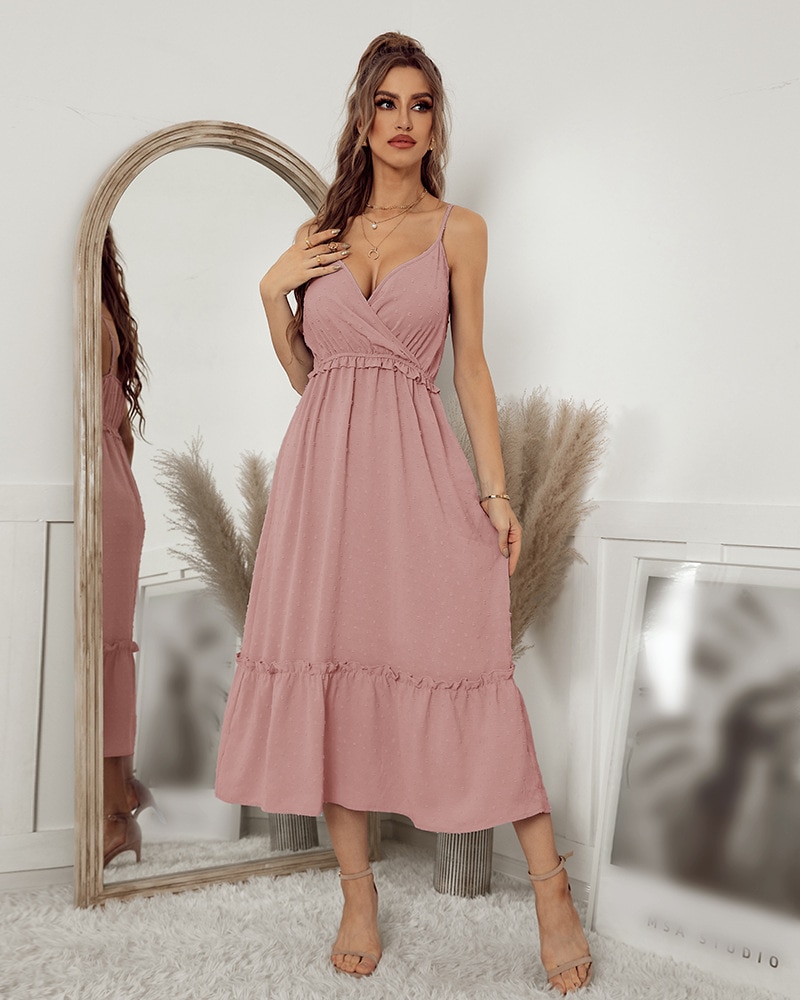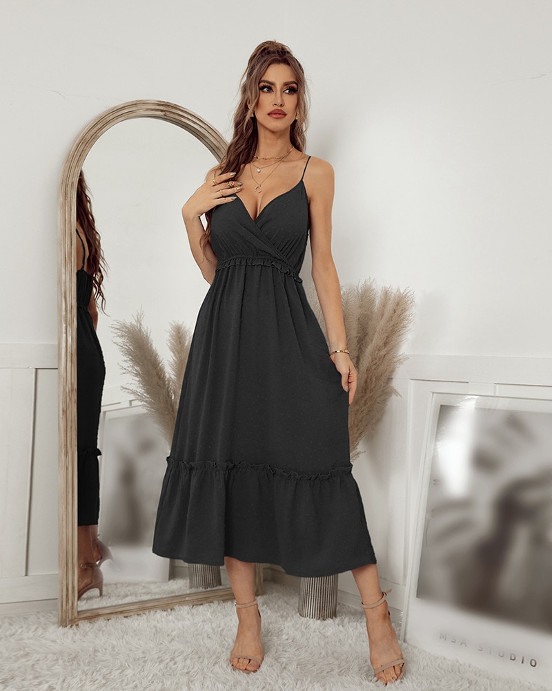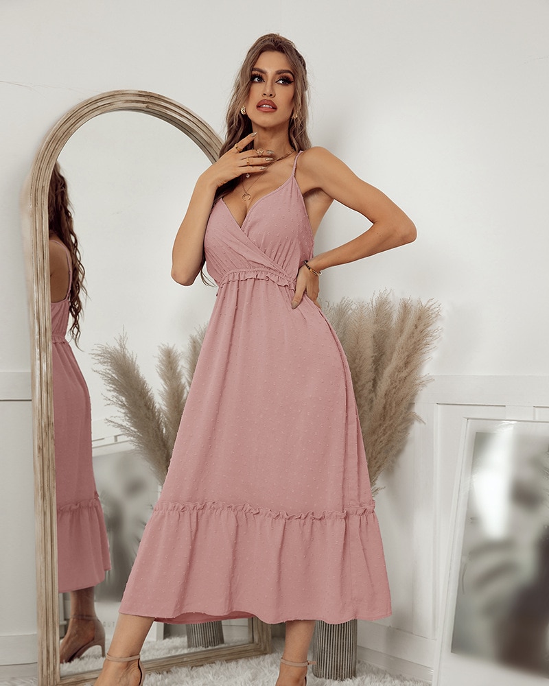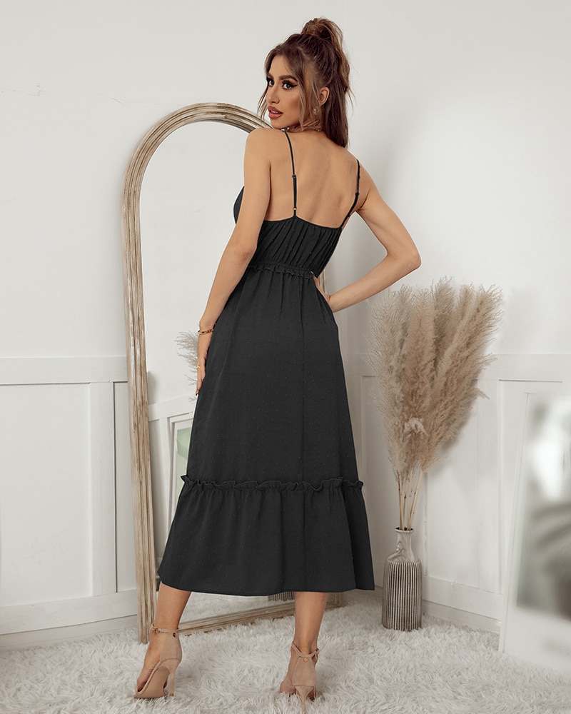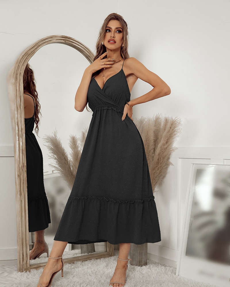 Summer Solid Casual Spaghetti Strap Dress Women V Neck Backless Ladies Ruffles Long Sexy Sling Sleeveless Dress