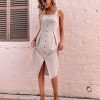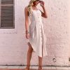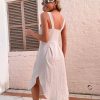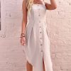 Summer Solid Color Sleeveless Sling Split Dress Slim Fit Irregular Cotton Linen Chic Button Dress