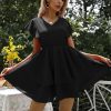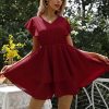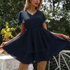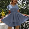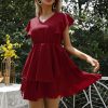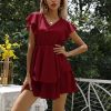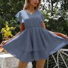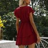 Summer Solid V Neck Cascading Ruffle Dress Women Casual Butterfly Sleeve V Neck Elegant Ladies Slim Wasit Short Dress New