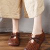 - Women soft bottom cowhide soft bottom comfortable plate buckle Flat shoes