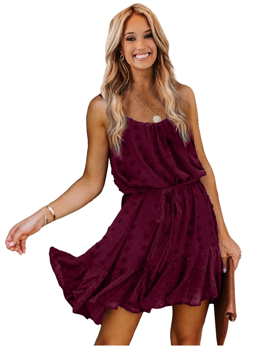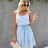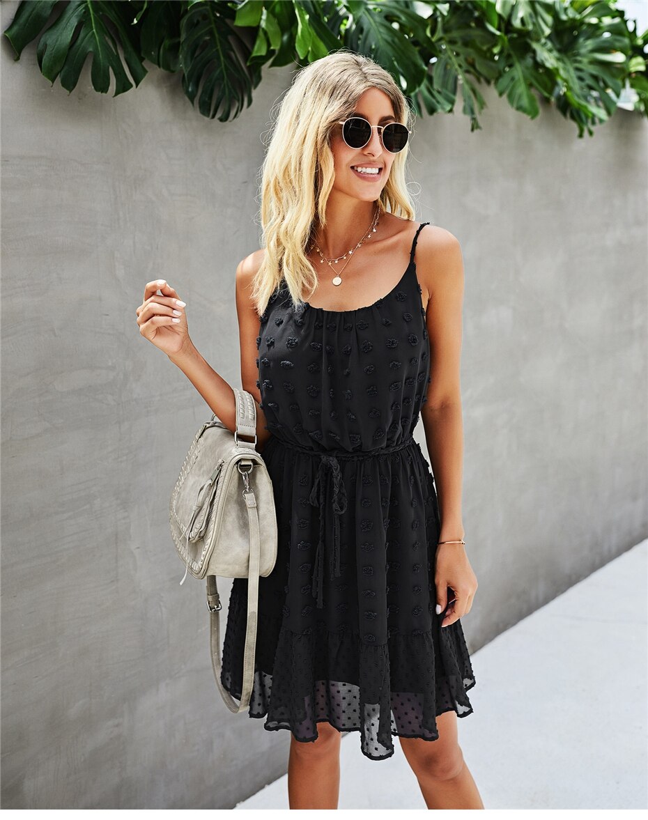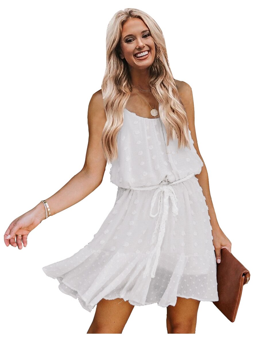 Summer Sweet Spaghetii Strap Dress For Women Solid Backless Ladies Princess Dress Female High Wasit Casual Dresses