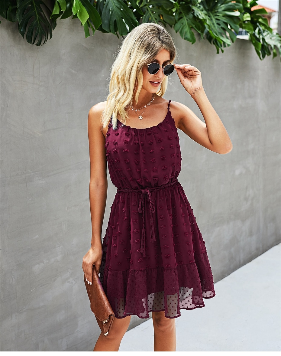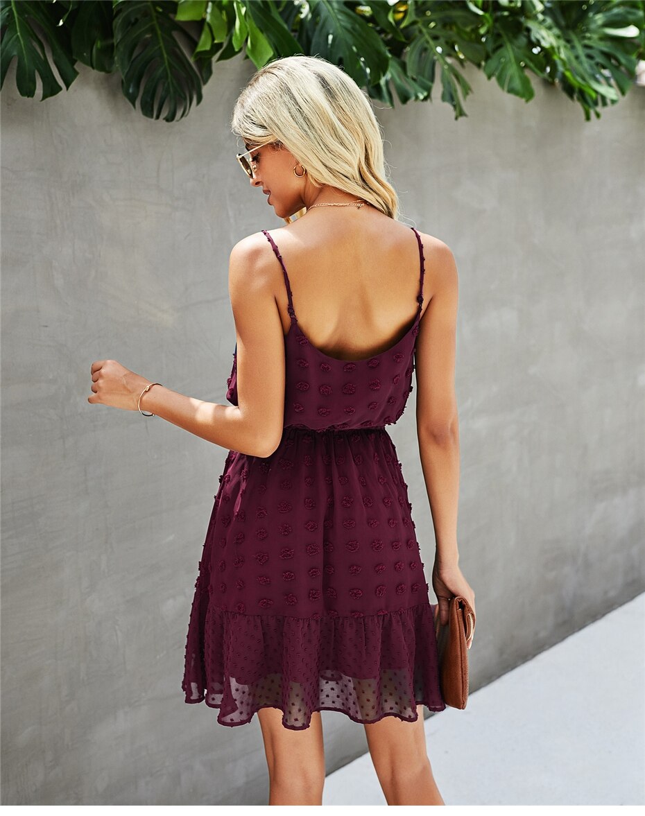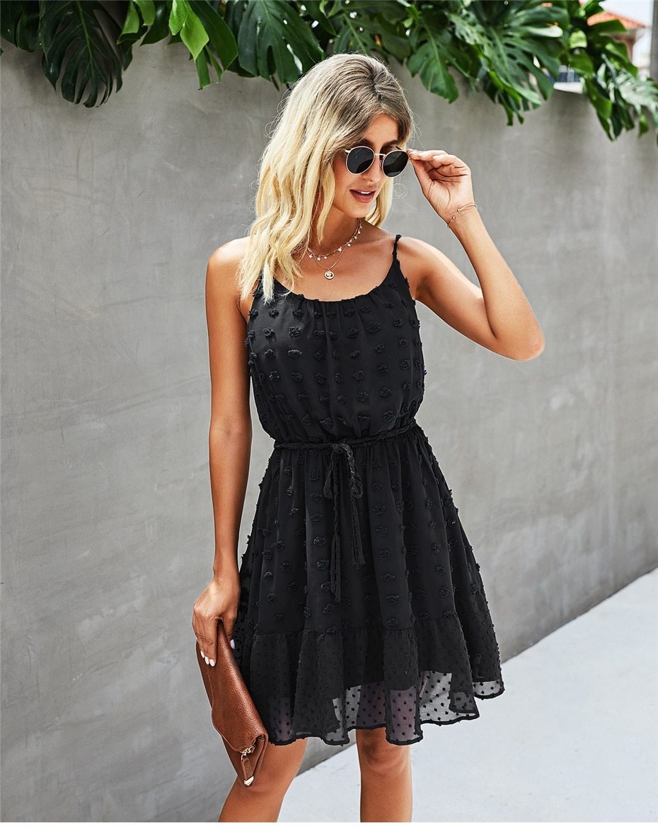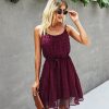 Summer Sweet Spaghetii Strap Dress For Women Solid Backless Ladies Princess Dress Female High Wasit Casual Dresses