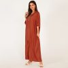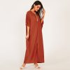 Summer Women Orange Long Dress Vintage Slit V-neck Webbing Half Sleeve Batwing Sleeve Loose Fashion Dress - Image 3