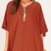 Summer Women Orange Long Dress Vintage Slit V-neck Webbing Half Sleeve Batwing Sleeve Loose Fashion Dress - Image 7