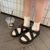 Sandals Women Solid Color Buckle Strap Flat Sandals Ladies Outside Peep Toe Strappy Cross Shoes Female Summer Beach Shoes