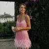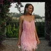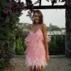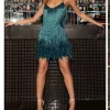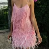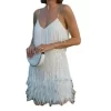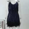 Summer Womens V-Neck Knee Length Sleeveless Dress with Feathers and Sequins