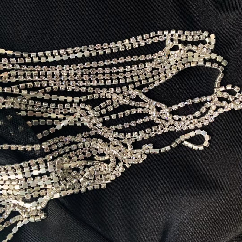 Tassels Detail Designed Plunge Dress Women Sexy V Neck Long Sleeve Bodycon Dress Winter Solid Tight Waist Party Dresses - Hplify