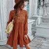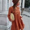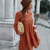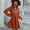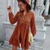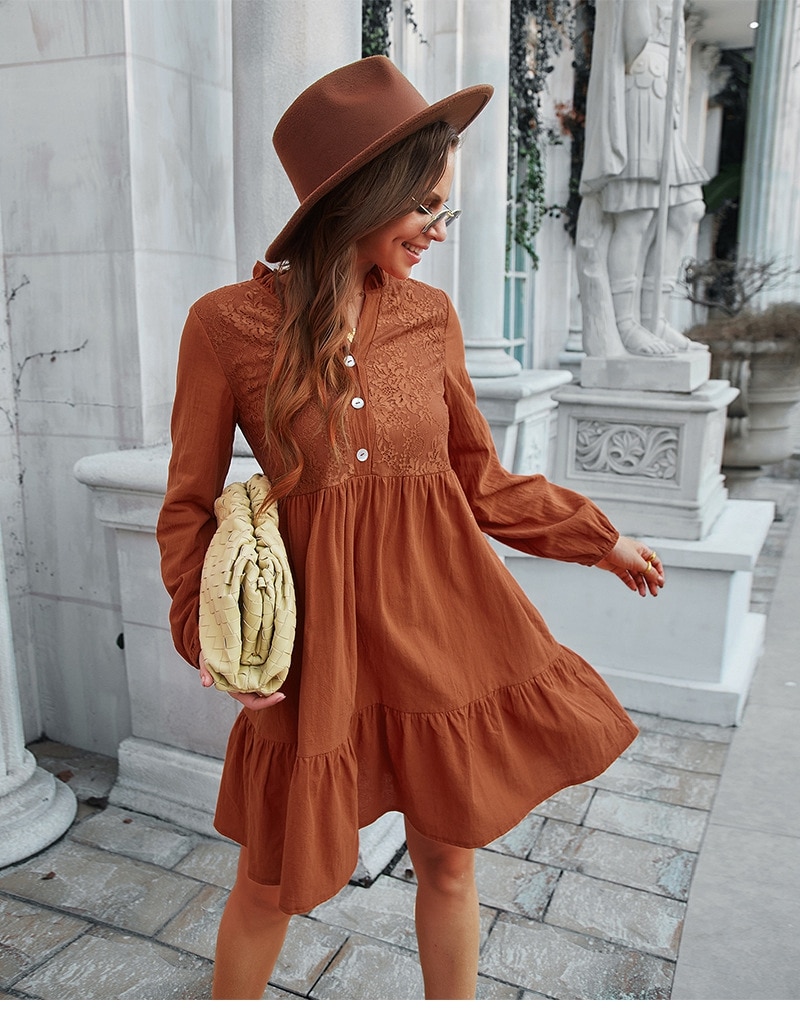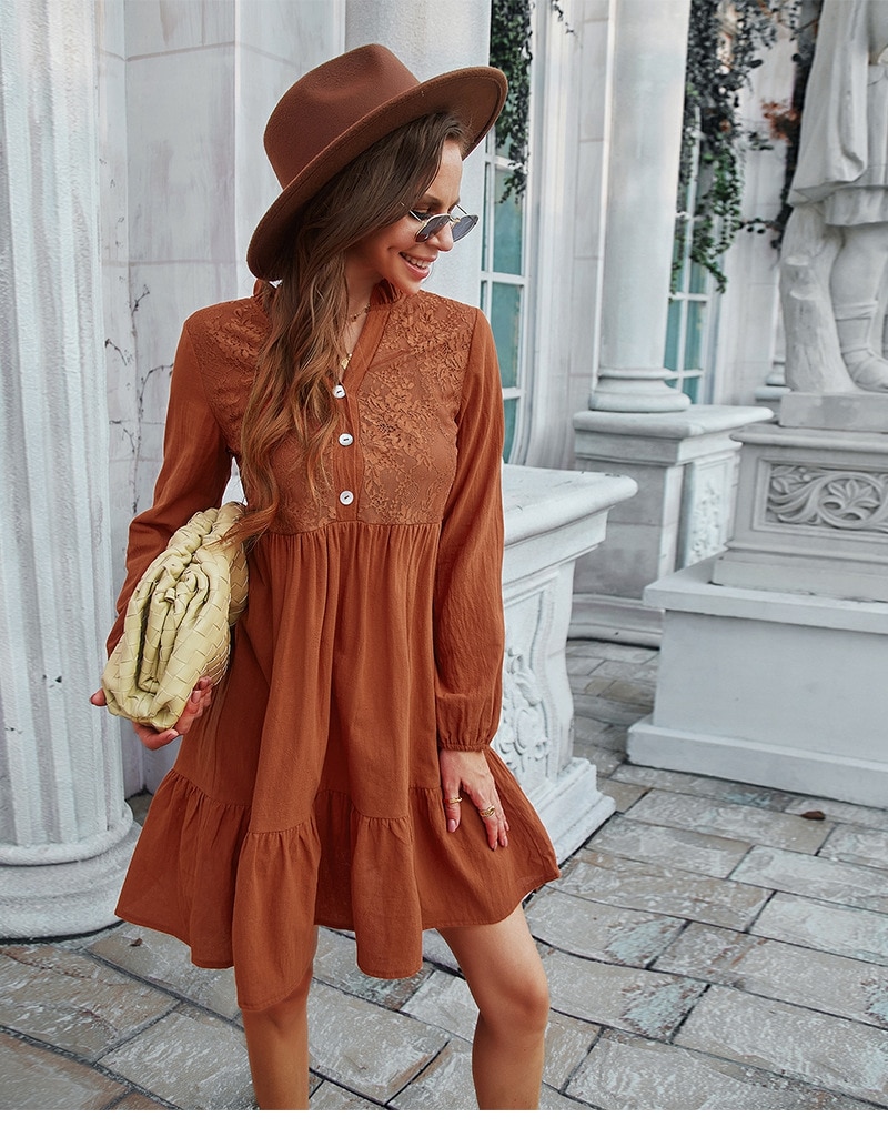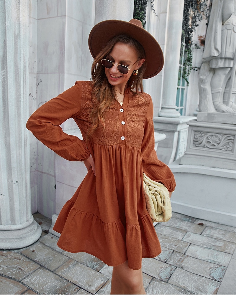Temperament Loose Casual All Match Dress Spring V Neck Long Sleeve Lace Button A Line Dress Casual Style