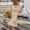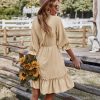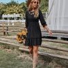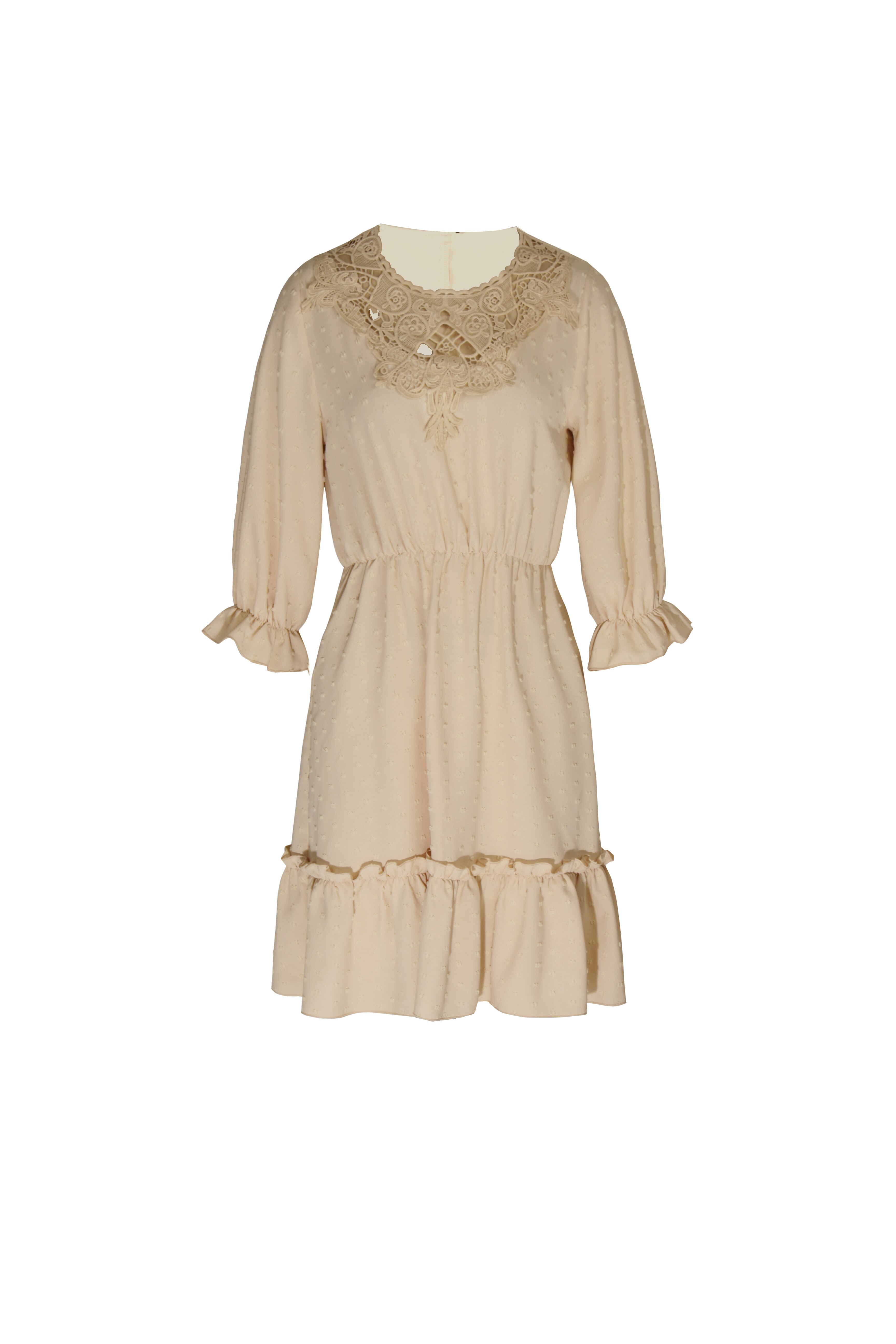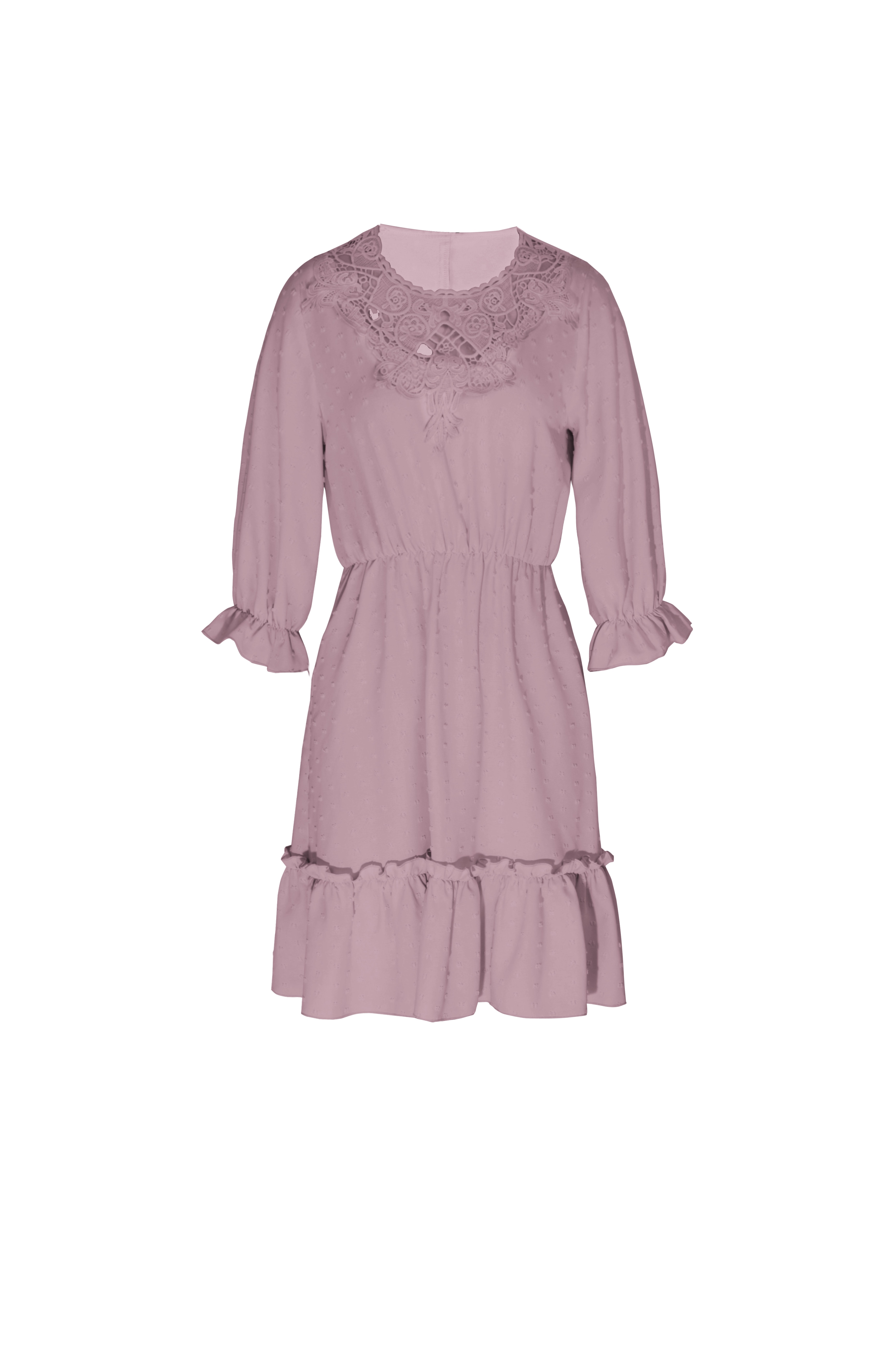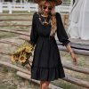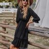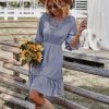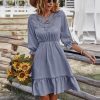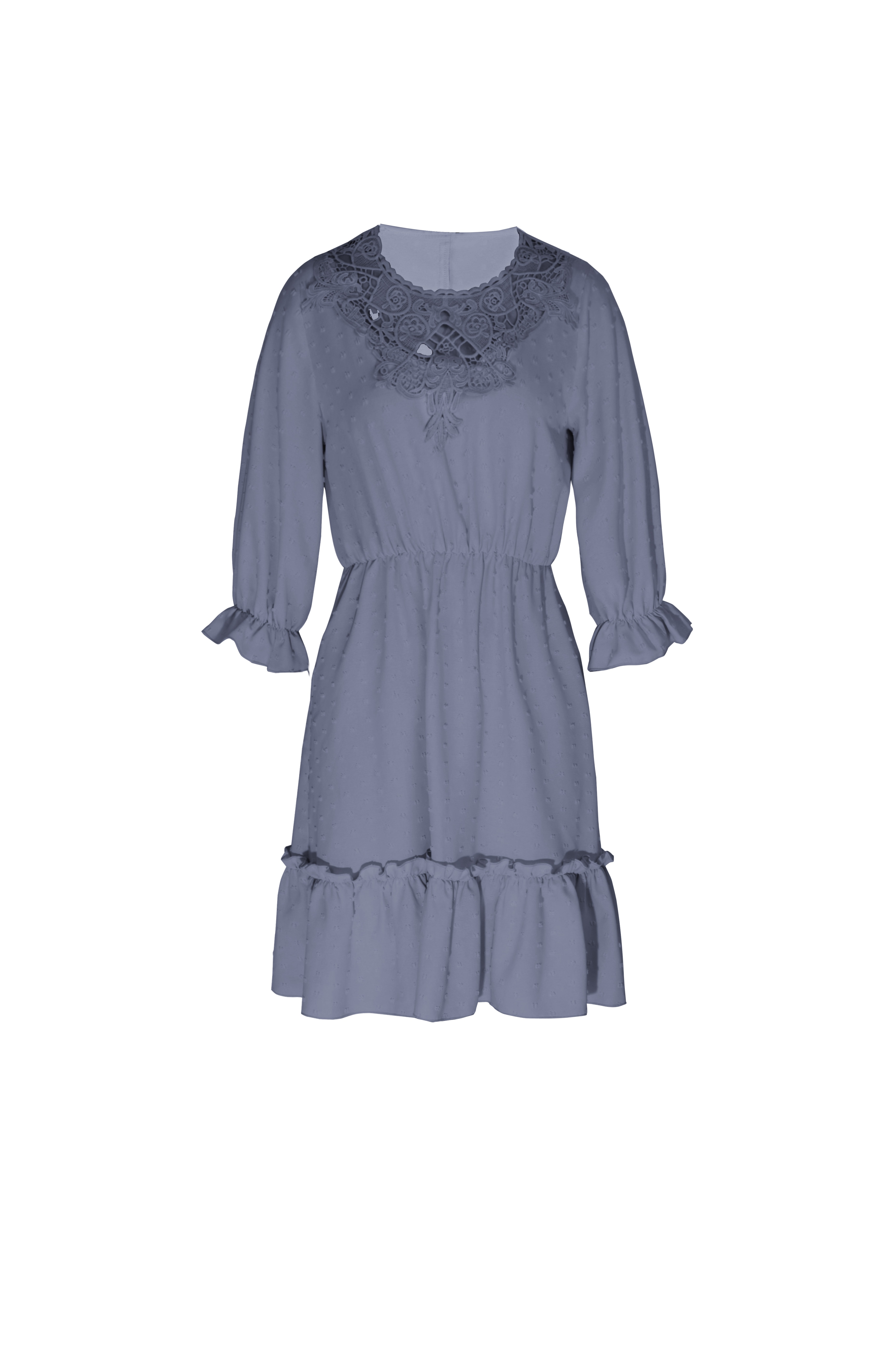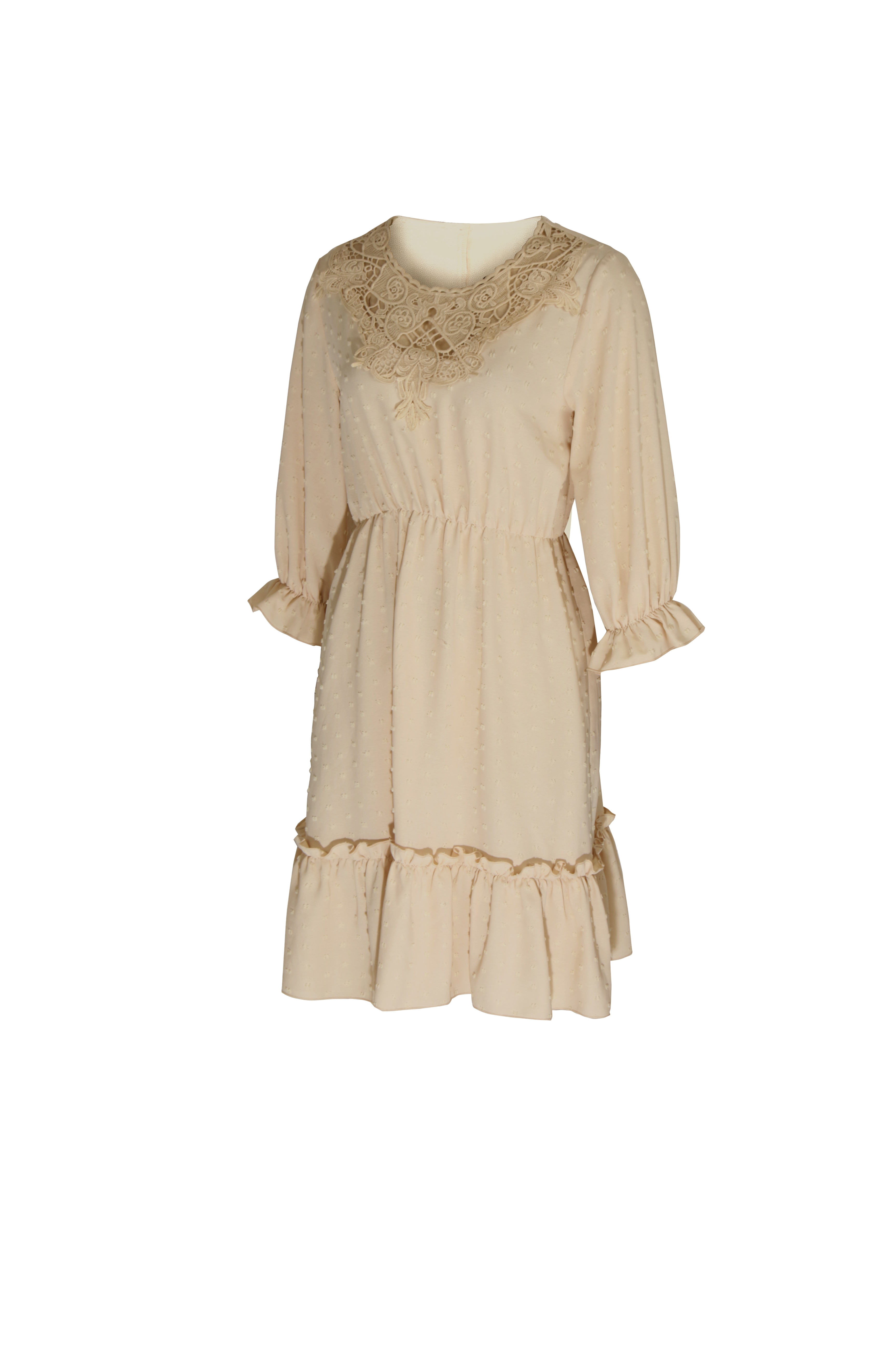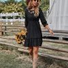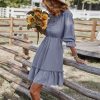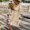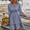 Temperament Women Summer V Neck Three Quarter Solid Color A Line Lace All Match Dresses For Fashion