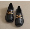 Thick Sole Loafers Women’s Chunky Heel Shoes Women’s Small Leather Shoes