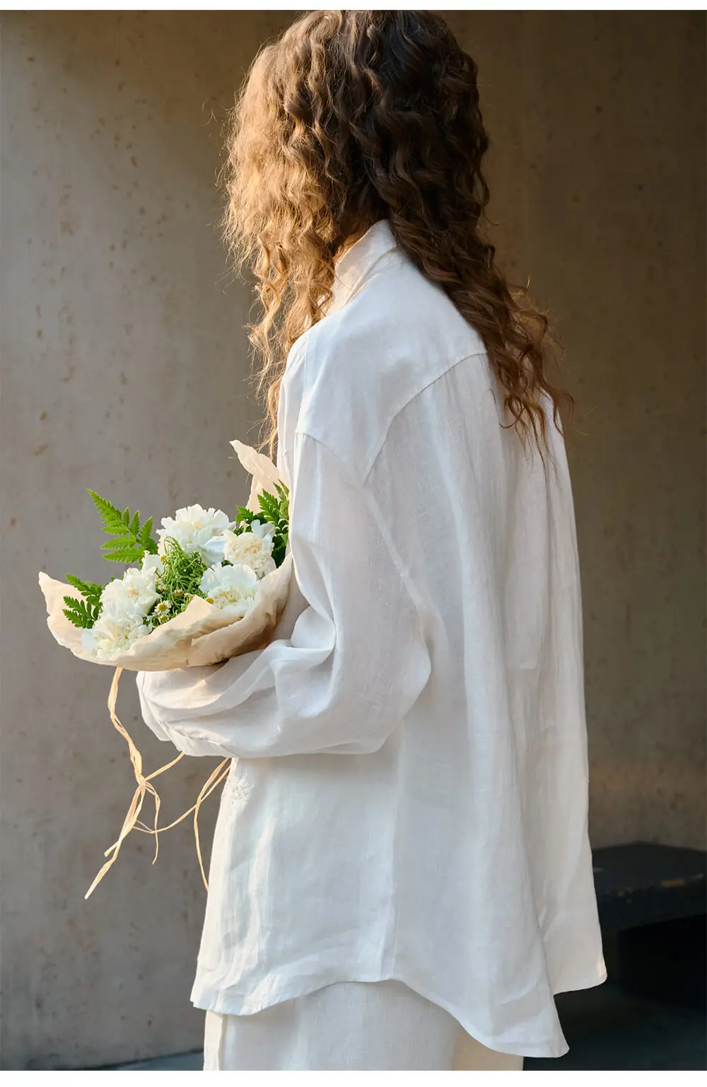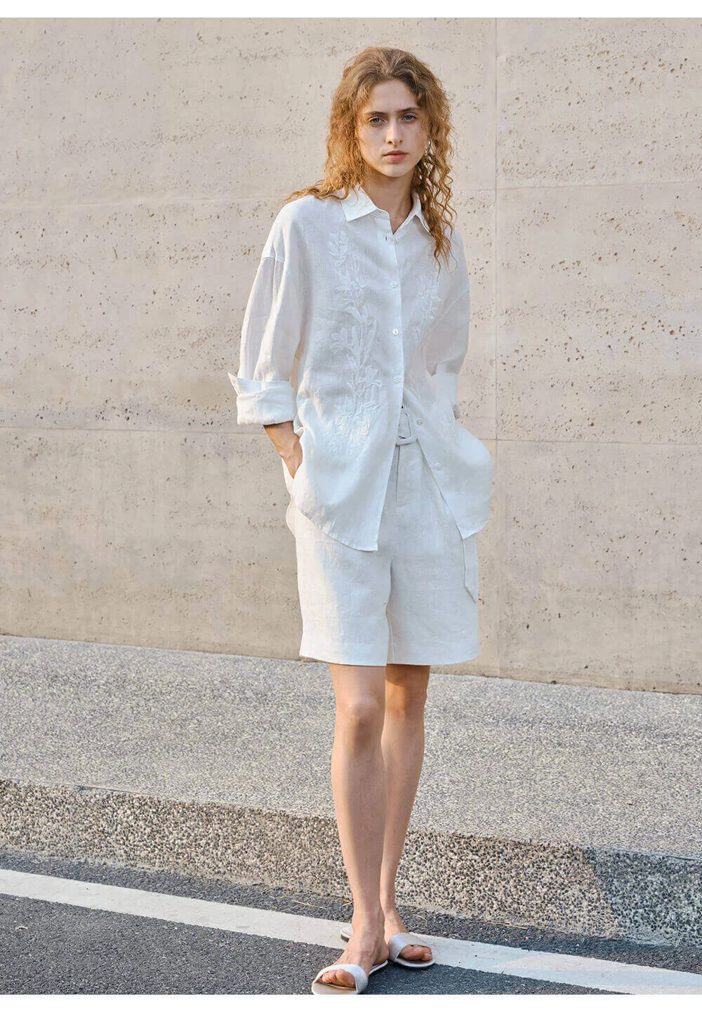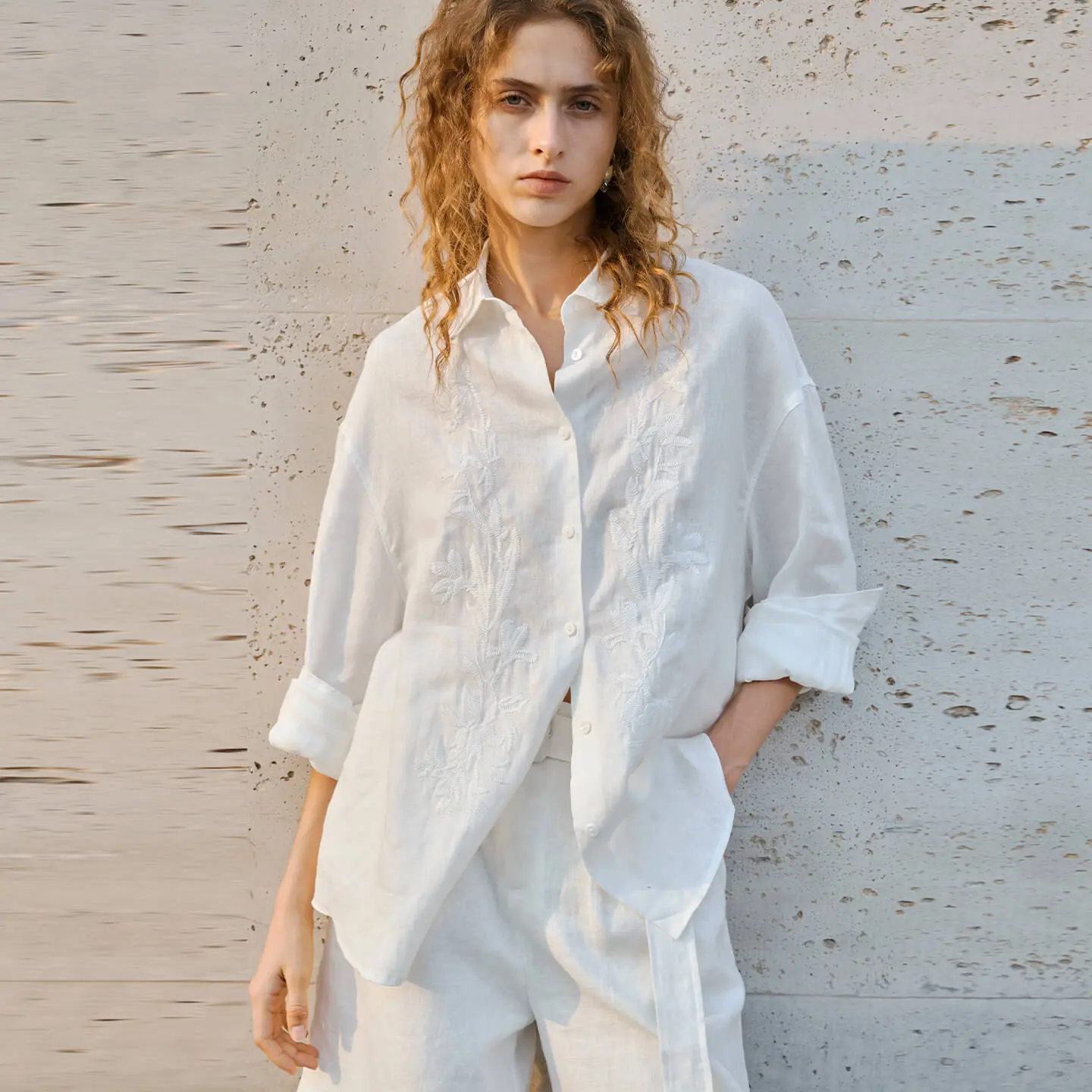 Timeless Breathable Pure Linen Floral Embroidery Long Sleeve Shirt