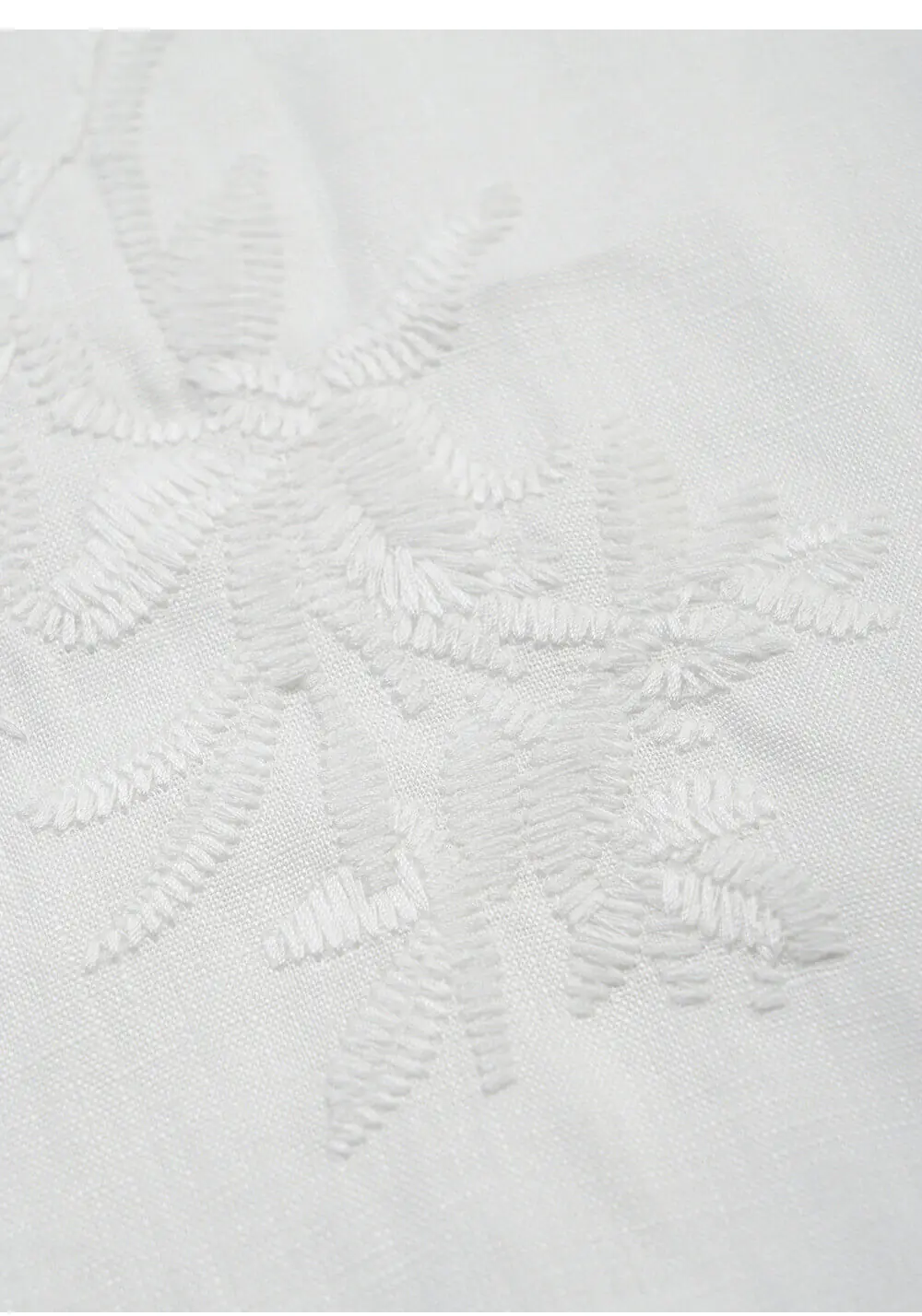 Soft, breathable 100% linen sits lightly against your skin, wicks away moisture to keep you cool all day. Subtle floral embroidery adds understated luxury to your polished modern minimalist look.