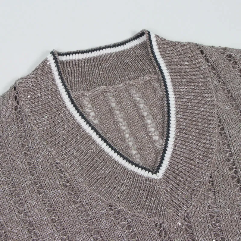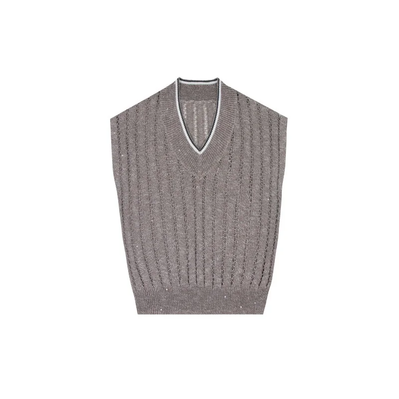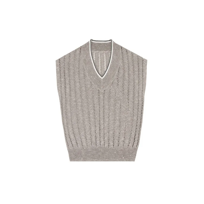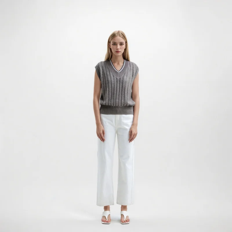 Timeless Linen Cotton Pointelle Knit V Neck Sleeveless Vest