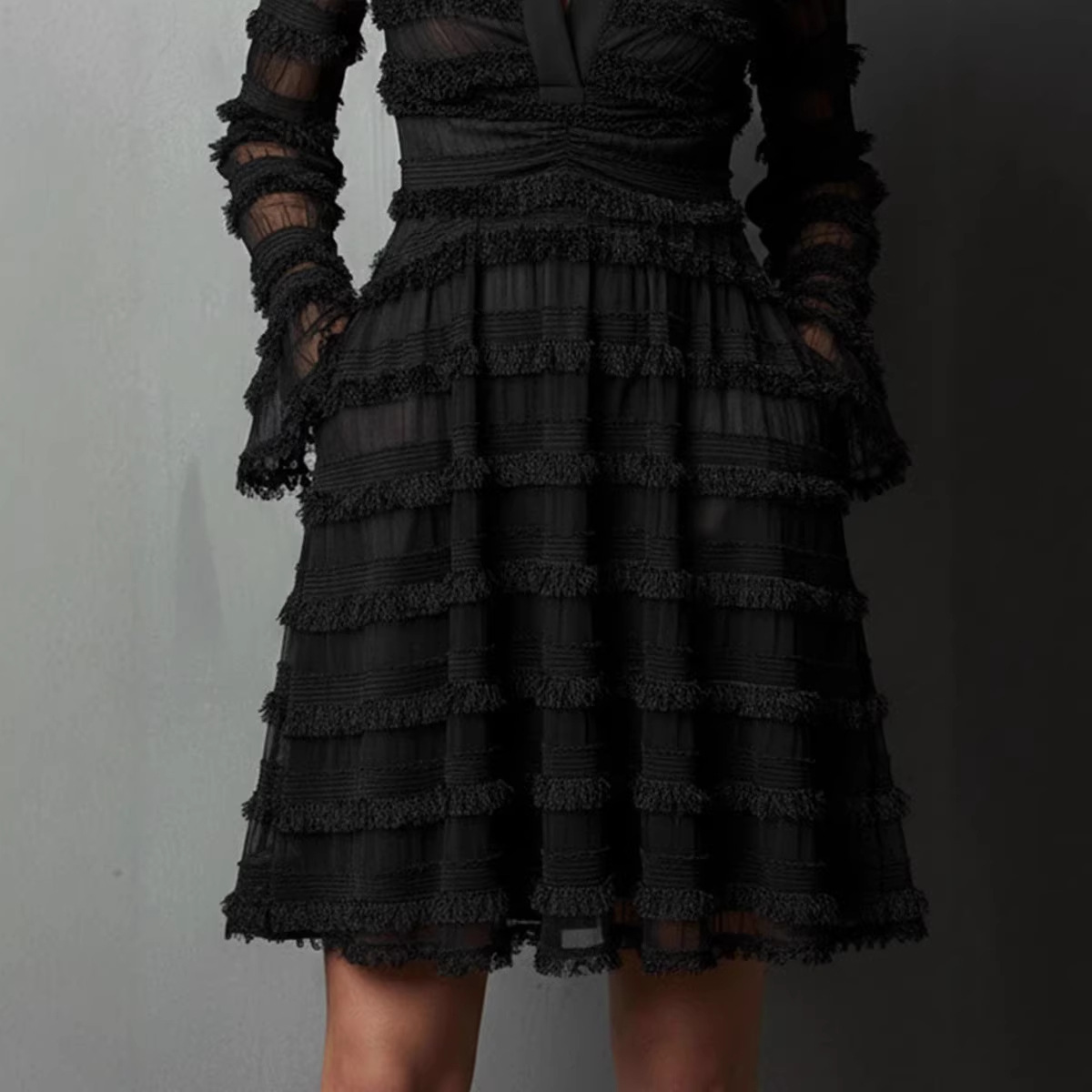 The second you slip this dress on, the stretch polyester fabric skims the skin without clinging, delivering all-day softness that moves with every step. Semi-sheer ruched sleeves catch subtle light as you walk, while the tailored high waist locks in a sculpted silhouette for all your outings. This piece sits firmly in the Urban Sporty aesthetic, versatile for every casual and social plan.