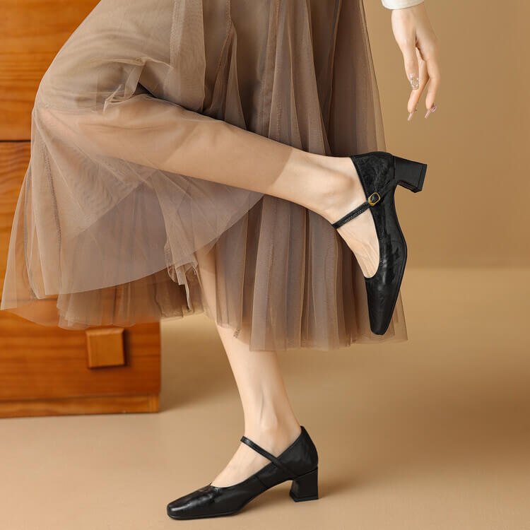 The second you slip these Mary Jane shoes on, you feel the buttery soft sheepskin upper mould gently to the curve of your foot, with no stiff edges or uncomfortable rubbing. The subtle lustre of the full-grain leather catches soft light with every step, and the stable block heel keeps your posture aligned without straining your arches even after hours of wear, fitting seamlessly into Timeless Classics wardrobes for year-round use.